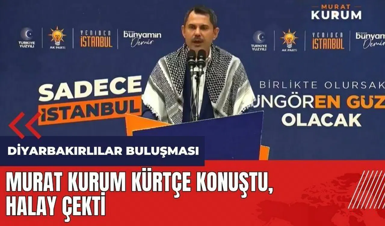 Omzunda poşu ile kürsüye çıkan Murat Kurum, konuşmasının bir bölümünü Kürtçe yaptı. Kurum daha sonra katılımcılarla birlikte halay çekti.