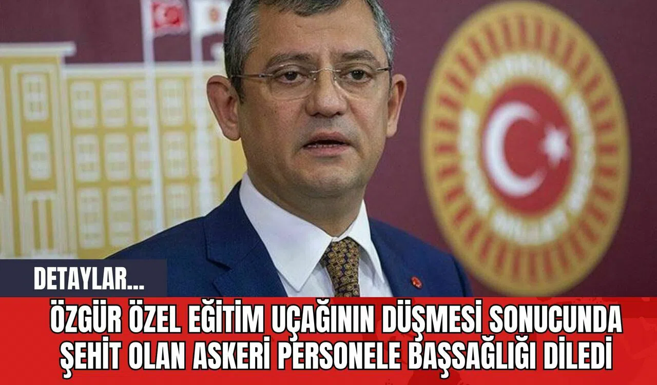 Özgür Özel, Konya’da askeri eğitim uçağının düşmesi sonucu şehit olan askeri personel için sosyal medya hesabı X’ten başsağlığı mesajı yayımladı. Özel, mesajında “Konya'da Hava Kuvvetlerimize ait askeri eğitim uçağının düştüğü kazada şehit olan askeri personelimize Allah'tan rahmet, yaralı personellerimize acil şifalar diliyorum.” ifadelerini kullandı.