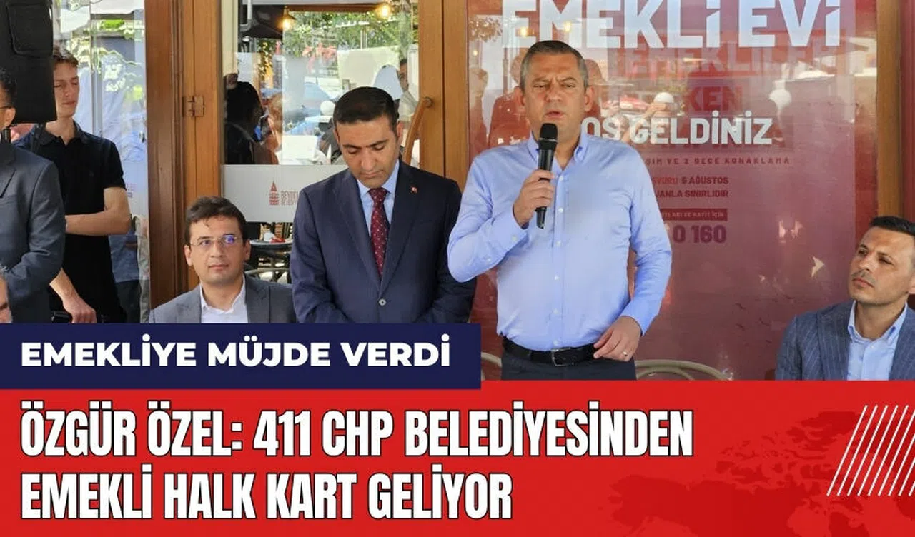 Özgür Özel, CHP belediyelerinin emeklilere yönelik uygulamalarını ortak bir zeminde birleştireceklerini ifade ederek, '411 CHP belediyesi ‘Emekli Halk Kart’ isimli bir kartta birleşiyor. Bütün Türkiye’de geçecek. Hem ulaşım yönünden hem diğer hizmetler açısından iş görecek bir kart olacak. Et desteği mi veriliyor o karta yüklenecek, süt desteği mi veriliyor o karta yüklenecek' şeklinde konuştu.