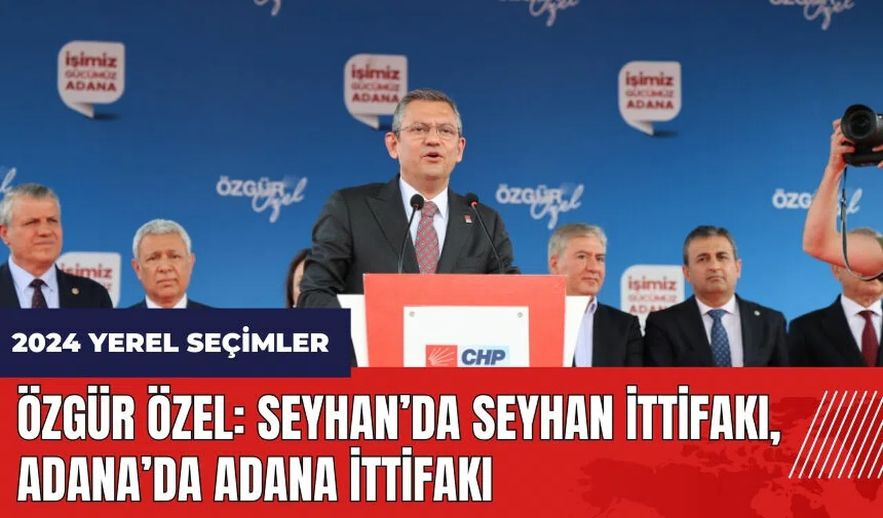 Özel, partisinin bu seçimde geçmişteki gibi bir ittifakla gitmediğini vurgulayarak, 'Yalnız kaldık. Seçimi kazanamaz diye düşünenler vardır. Bunlar burada Cumhur İttifakı karşısında Seyhan'da Seyhan ittifakıyla, Adana'da Adana ittifakıyla, Türkiye'de Türkiye ittifakıyla bu korku ittifakının karşısında biz Seyhan'a geldik.' dedi. Özel, partisinin her kesimden oy istediğini belirterek, 'Sosyal demokratlardan, milliyetçi demokratlardan, muhafazakar demokratlardan, Türklerden, Kürtlerden, Adana'da yaşayan hangi etnik grup varsa ondan, Alevi'den, Sünni'den ama gönlünde Seyhan alan olan, vatan olan bütün güzel insanlardan oy istemeye geldik.' ifadelerini kullandı.