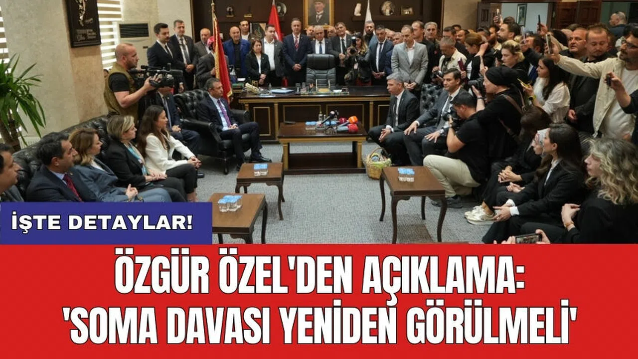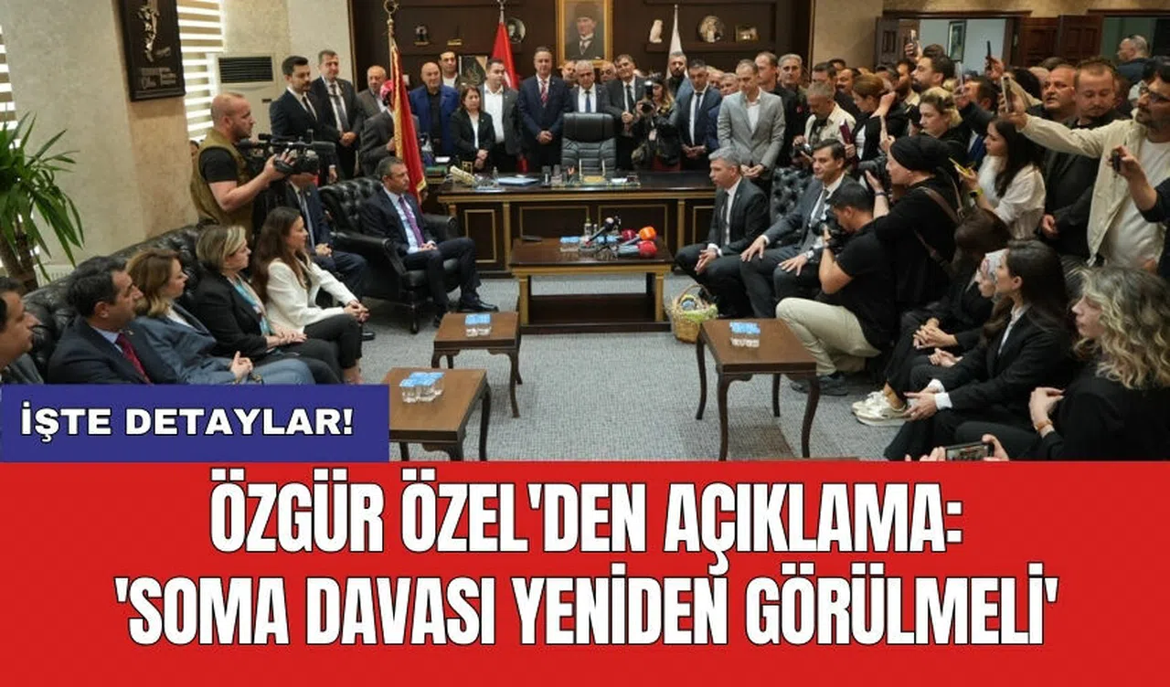Soma maden faciasının 10. yılında Soma Belediyesini ziyaret eden CHP Genel Başkanı Özgür Özel, Soma Davasının yeniden ele alınması gerektiğini vurgulayarak, "Soma davası tekrar görülmelidir. Soma'ya adalete kavuşmadan Özgür Özel'in gözleri kapanırsa, kapanmaz. Bu konuda çok açık konuşuyorum, adalete kavuşmadan gözlerimizi kapatmayacağız" dedi.