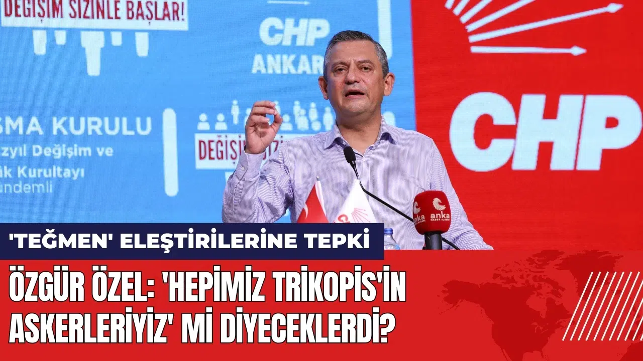 Özgür Özel, teğmenlerin yemin töreninde "Mustafa Kemal'in askerleriyiz" sloganının kullanılmasını savundu ve bu durumun tartışma konusu olmasını eleştirdi. Özel, "Tören bittikten sonra andı içtiler. Bu metin 2016 yılına kadar resmi törenlerde okunan metin. Birileri bu metinden rahatsız olmuşlar. Sonrasında da 'Mustafa Kemal'in askerleriyiz' demişler. Ne diyeceklerdi? Sizin akıl önderiniz fesli deli Kadir’in ’Keşke Yunan kazansaydı’ dediği gibi ‘Trikopis’in askerleriyiz’ mi diyeceklerdi? Elbette Mustafa Kemal’in askerleri onlar!" şeklinde konuştu.
