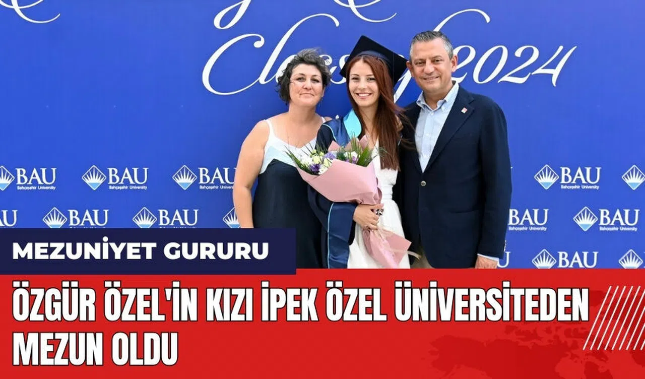 Cumhuriyet Halk Partisi (CHP) Genel Başkanı Özgür Özel, kızı İpek Özel’in İstanbul'da düzenlenen diploma törenine katıldı. İpek Özel, Bahçeşehir Üniversitesi Hukuk Fakültesi'nden mezun olarak ailesini gururlandırdı.