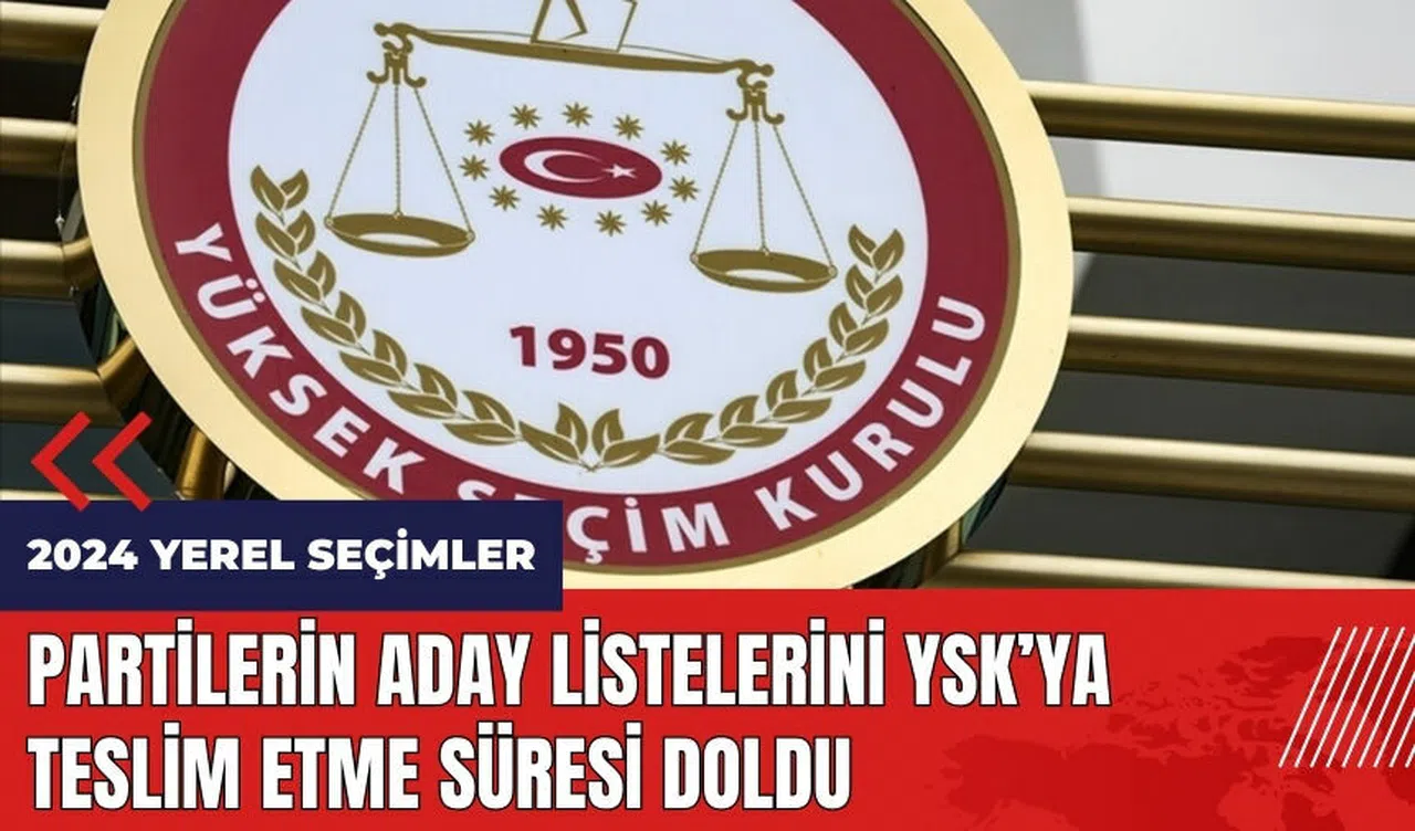 Türkiye, 31 Mart 2024 tarihindeki yerel seçimlere doğru ilerliyor. Yüksek Seçim Kurulu'nun yayınladığı takvime göre, siyasi partilerin yerel seçimler için belirledikleri aday listelerini teslim etme süresi bugün itibarıyla sona erdi.