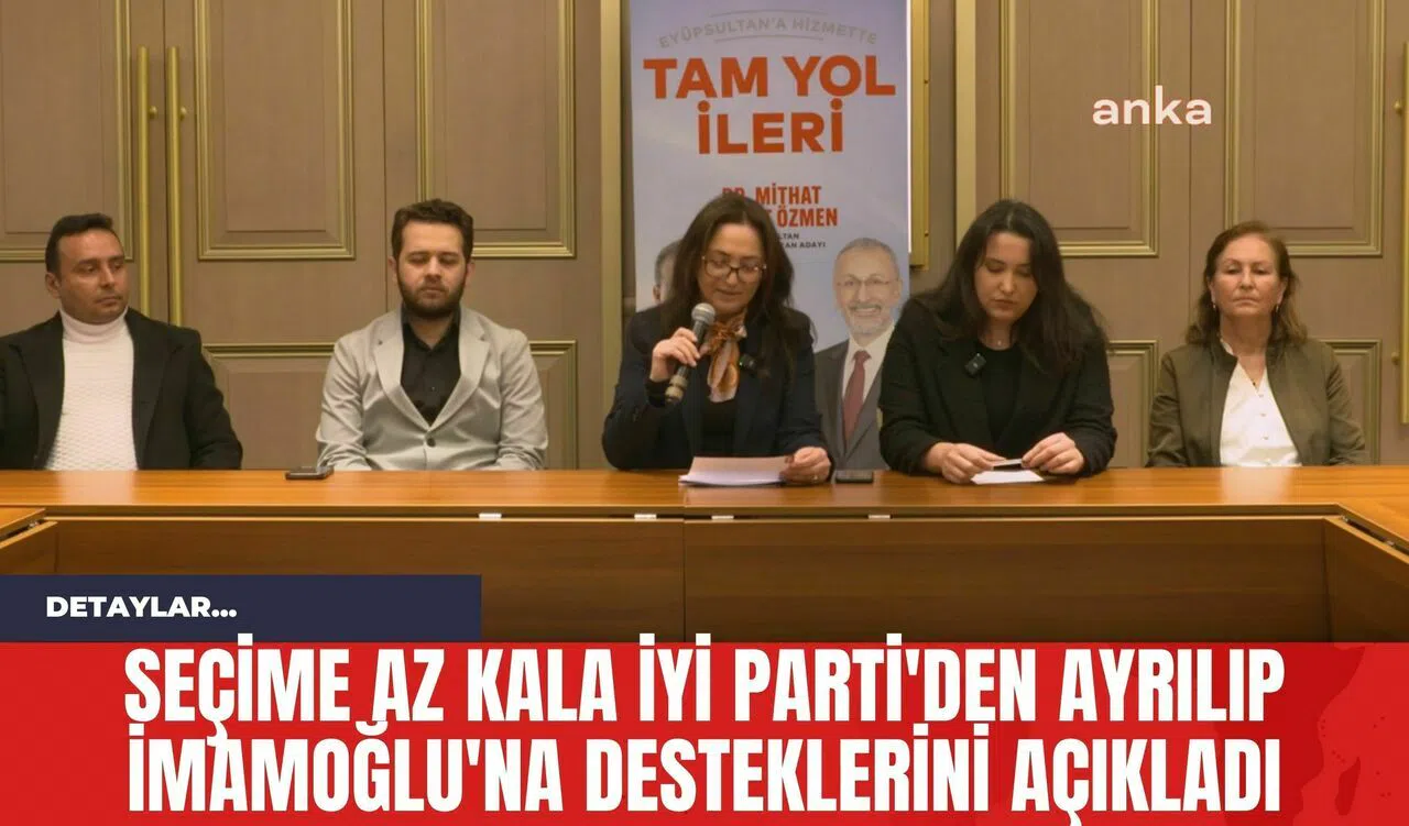 Eyüpsultan Belediye Meclis Üyesi adaylığından ve İl Başkanlığı'ndan istifa eden İYİ Parti Eyüp İlçe Başkanı İlayda Keskin, seçimlere beş gün kala Ekrem İmamoğlu ve CHP Eyüpsultan Belediye Başkan Adayı Mithat Bülent Özmen'e destek vereceğini açıkladı.