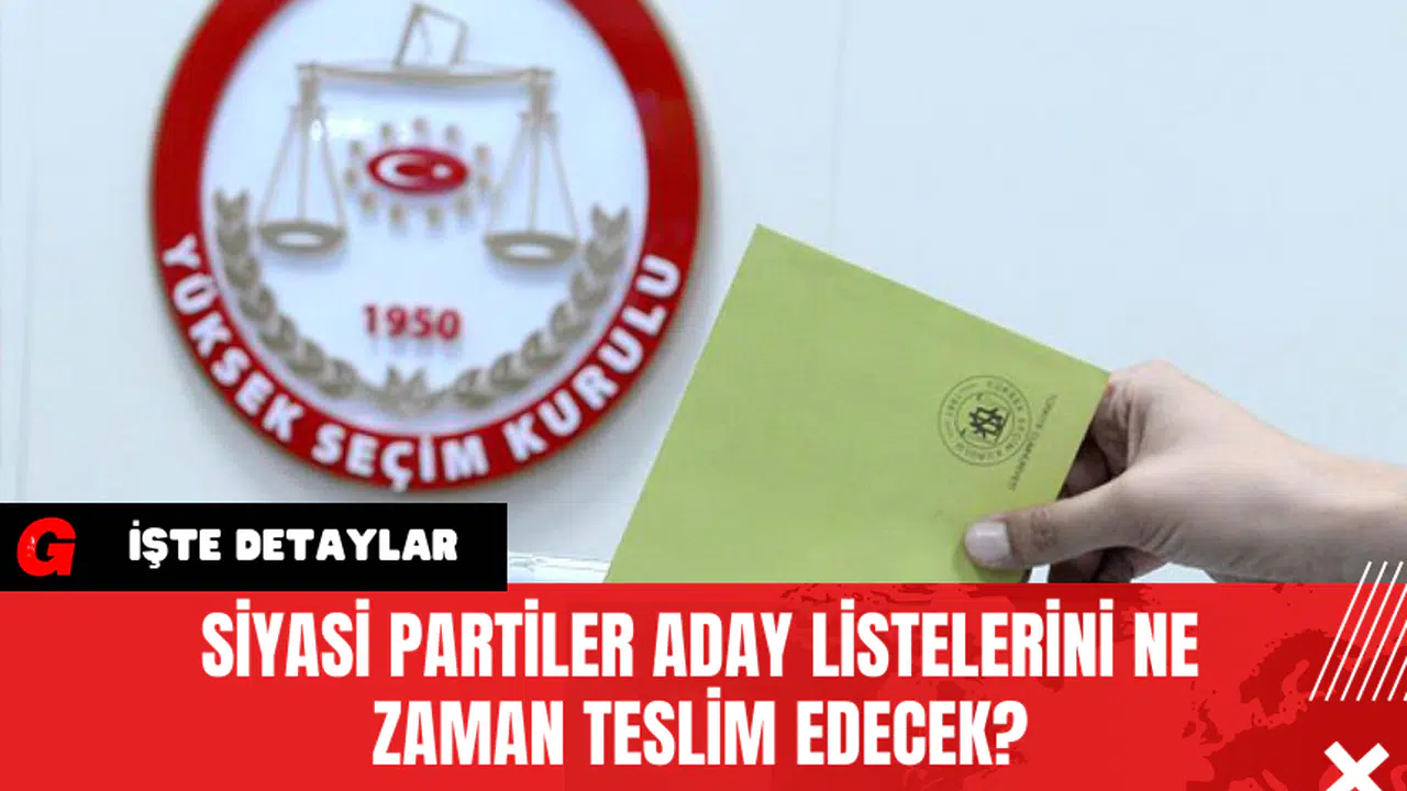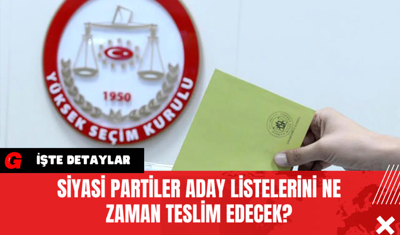 Siyasi partilerin aday listelerini 20 Şubat’a kadar teslim etmeleri gerekmektedir. Bu süre zarfında, belediye başkanlığı, belediye meclis üyeliği ve il genel meclisi üyelikleri seçimlerine ait aday listeleri ilçe seçim kurullarına; büyükşehirlerde siyasi parti il başkanlıkları, büyükşehir belediye başkan aday listeleri il seçim kurullarına iletilmelidir.