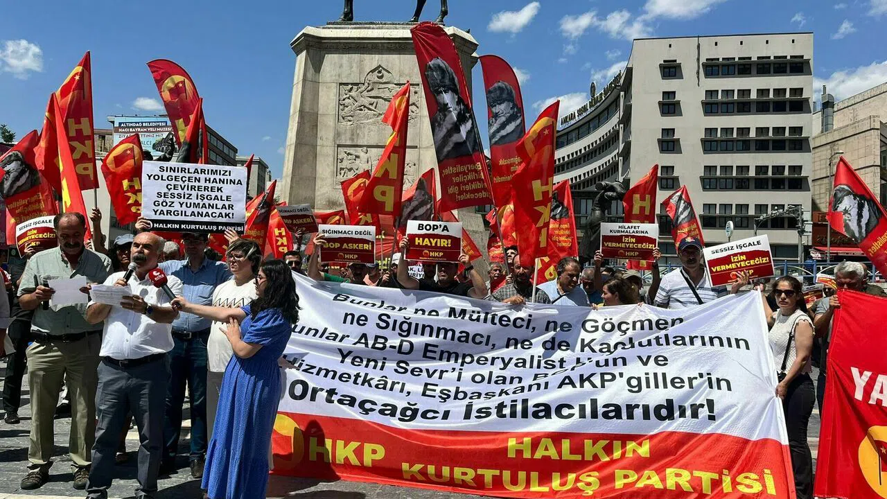 Halkın Kurtuluş Partisi (HKP) üyeleri bugün Ankara’da iktidarın göçmen politikalarını protesto etti. HKP Genel Sekreter Yardımcısı Sait Kıran, "Biz, 2011 Nisan’ından bu yana ülkemize gelmiş Suriyeli, Afgan, Iraklı, İranlı, Pakistanlı tüm istilacıları vatandaşlık alıp almadıklarına bakmaksızın ülkeden çıkaracağız. Ayrıca da bu insanların yasal ve büyük kısmı yasal olmayan yollardan Avrupa’ya gönderilmelerini sağlayacağız" dedi.