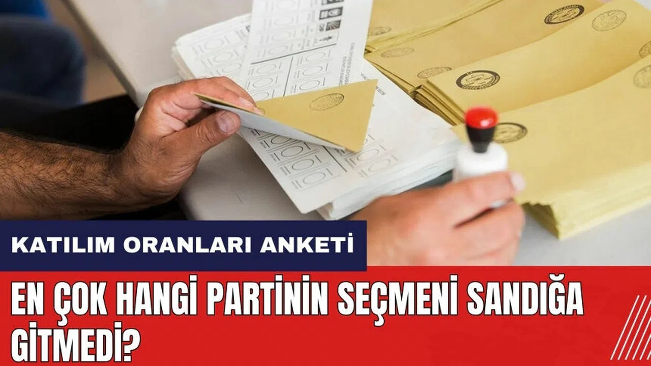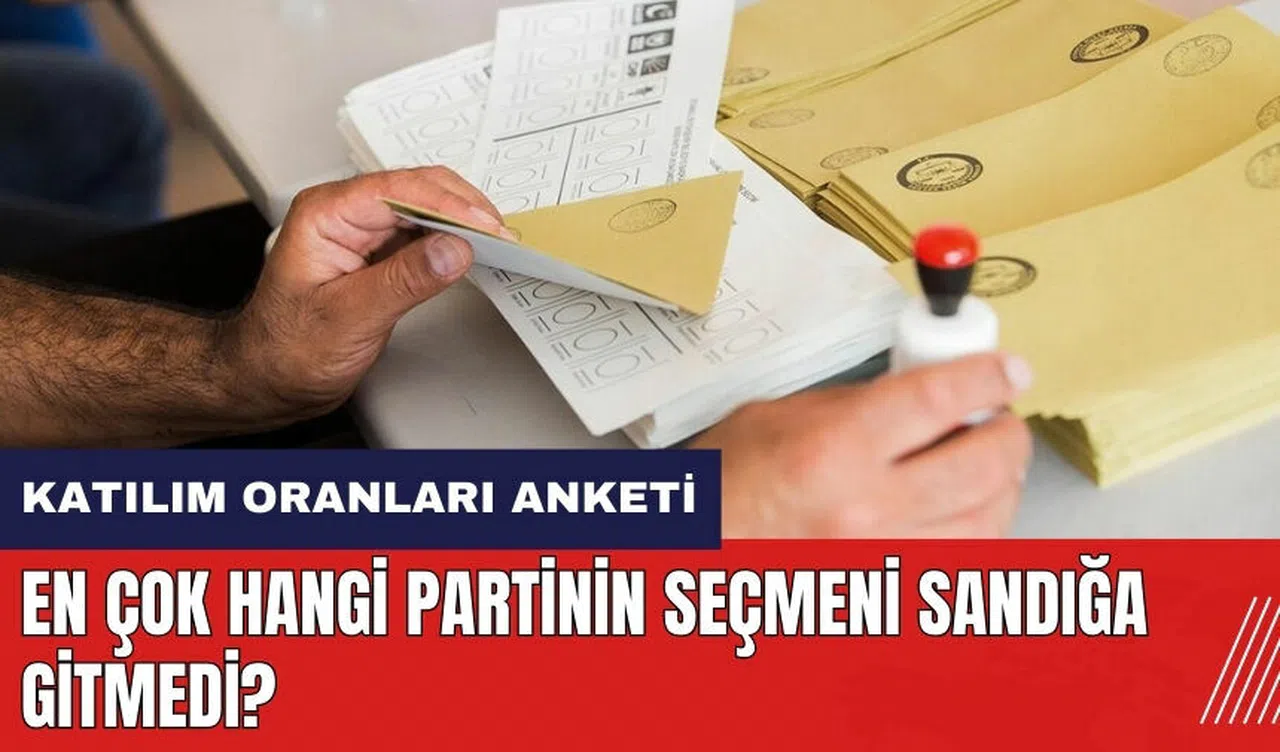 Türkiye genelinde seçimlere katılımın düşük olduğunu düşünenlere yöneltilen 'Türkiye genelinde en çok hangi parti seçmeninin katılmadığını düşünüyorsunuz?' sorusuna; katılımcıların yüzde 50,5'i AK Parti, yüzde 12,3'ü AK Parti ve DEM Parti, yüzde 11'i 'bütün partilerin seçmenleri', yüzde 7,6'sı AK Parti-MHP, yüzde 6,5'i DEM Parti yanıtını verdi.