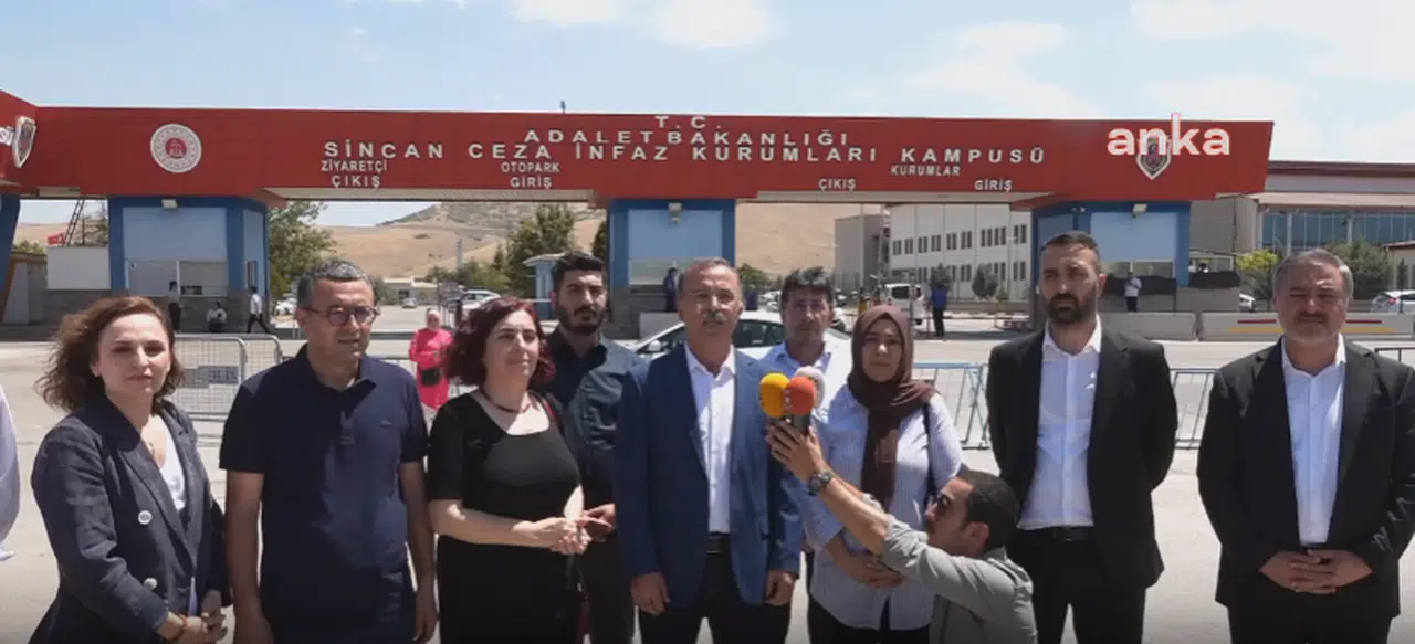 Ankara 22. Ağır Ceza Mahkemesi’nde görülen Kobani Davası’nın duruşması, Sincan Cezaevi Kampüsü’ndeki mahkeme salonunda bugün yapılmaya başlandı. Duruşmaya verilen öğle arasında Yeşil Sol Parti Eş Sözcüsü İbrahim Akın ve beraberindeki milletvekilleri cezaevi önünde basın açıklaması yaptı.