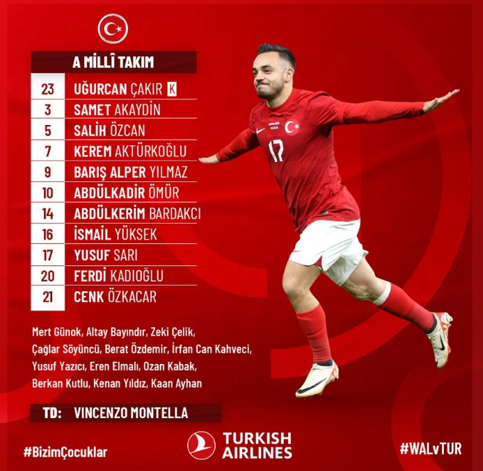 Türkiye: Uğurcan Çakır, Samet Akaydin, Salih Özcan, Kerem Aktürkoğlu, Barış Alper Yılmaz, Abdülkadir Ömür, Abdülkerim Bardakcı, İsmail Yüksek, Yusuf Sarı, Ferdi Kadıoğlu, Cenk Özkacar.
