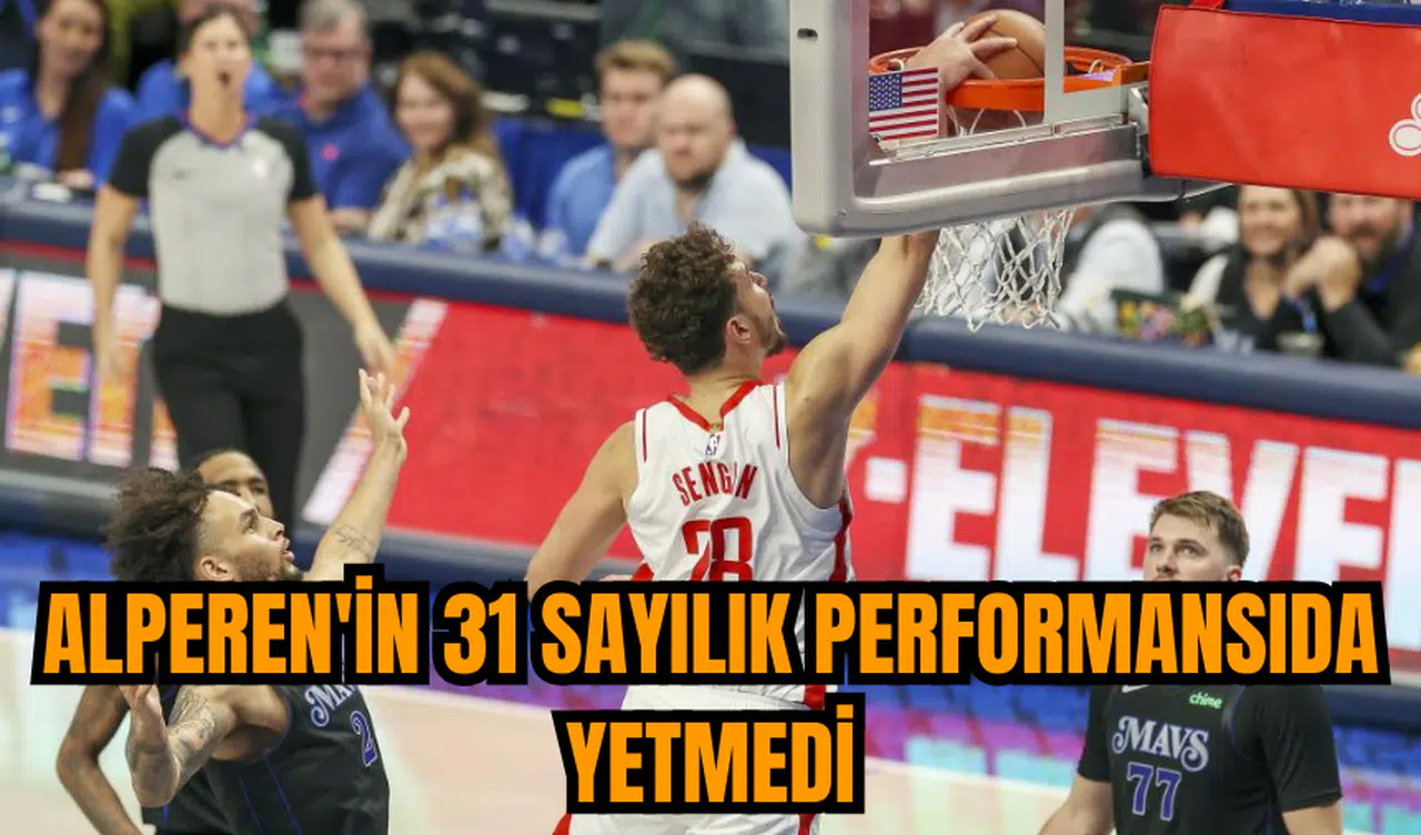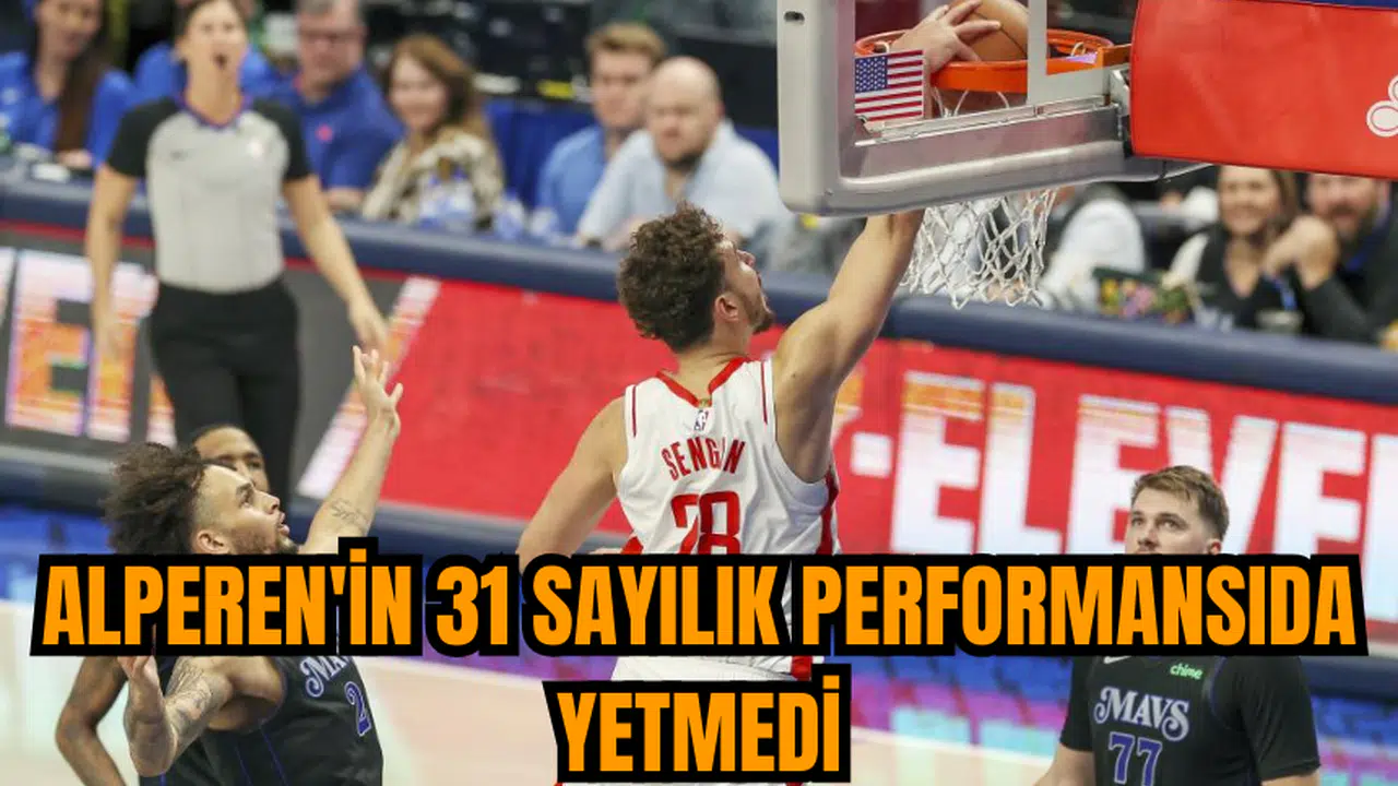 NBA'de 13. haftanın açılış maçında Houston Rockets, deplasmanda Dallas Mavericks'e 121-115 mağlup oldu. Alperen Şengün'ün 31 sayı, 9 ribaund, 6 asist ve 1 blokla oynadığı Houston Rockets, karşılaşmaya iyi başladı ve ilk çeyreği 28-27 önde kapattı. İkinci çeyrekte Dallas Mavericks, Luka Doncic'in 19 sayı, 8 asist ve 6 ribaundluk performansıyla farkı kapattı ve devreyi 58-56 önde tamamladı.