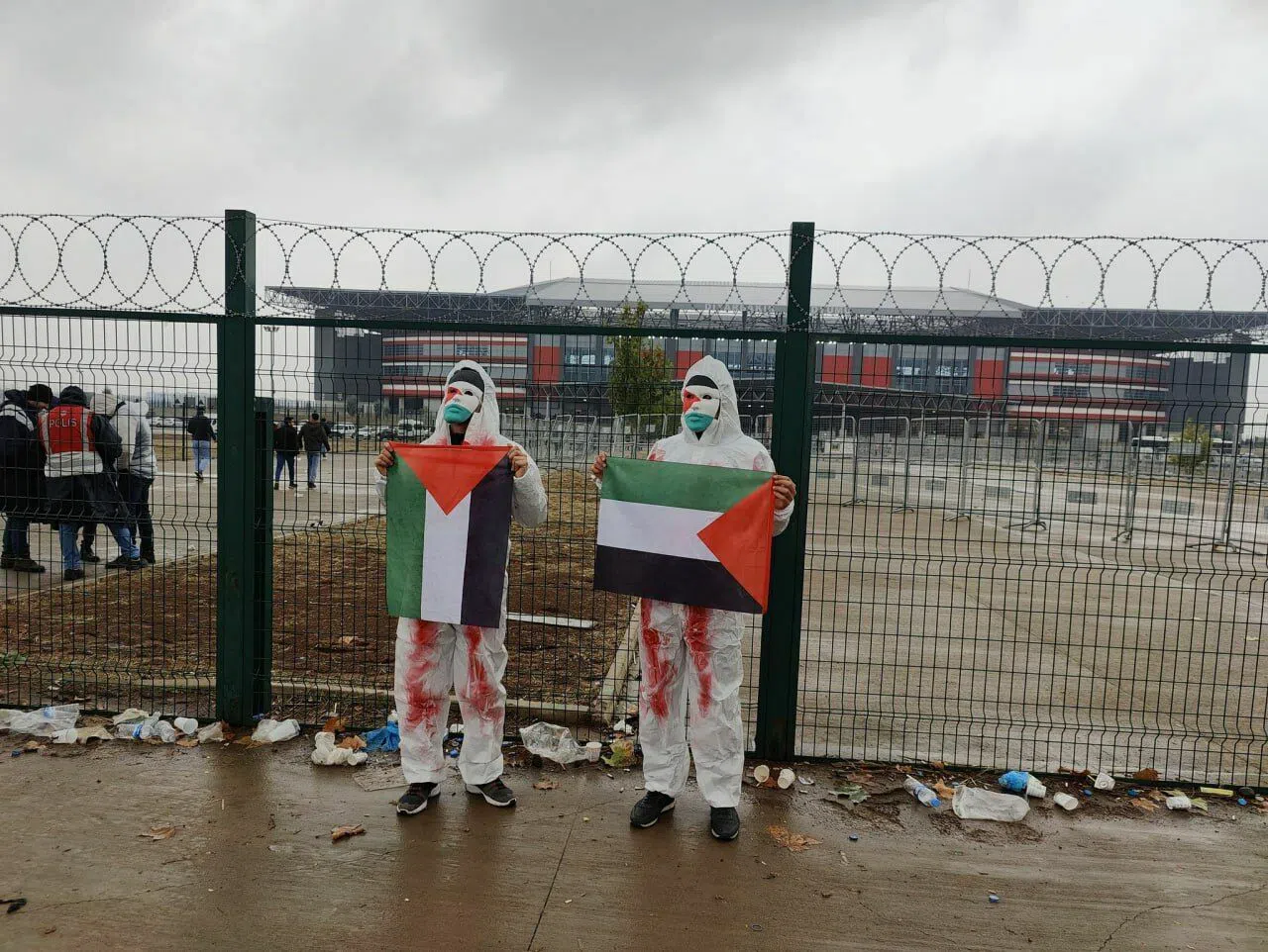 Amedspor'un Pazar günü Fethiyespor'u konuk ettiği maçta, bir grup taraftar Filistin'e destek amacıyla dikkat çekici bir eylemde bulundu. Stadyumdaki yüzlerce taraftar arasından birkaç kişi, maç boyunca giydikleri Gazze bayrağı ve beyaz tulum gaz maskeleriyle Filistin'e olan duyarlılıklarını sergiledi.