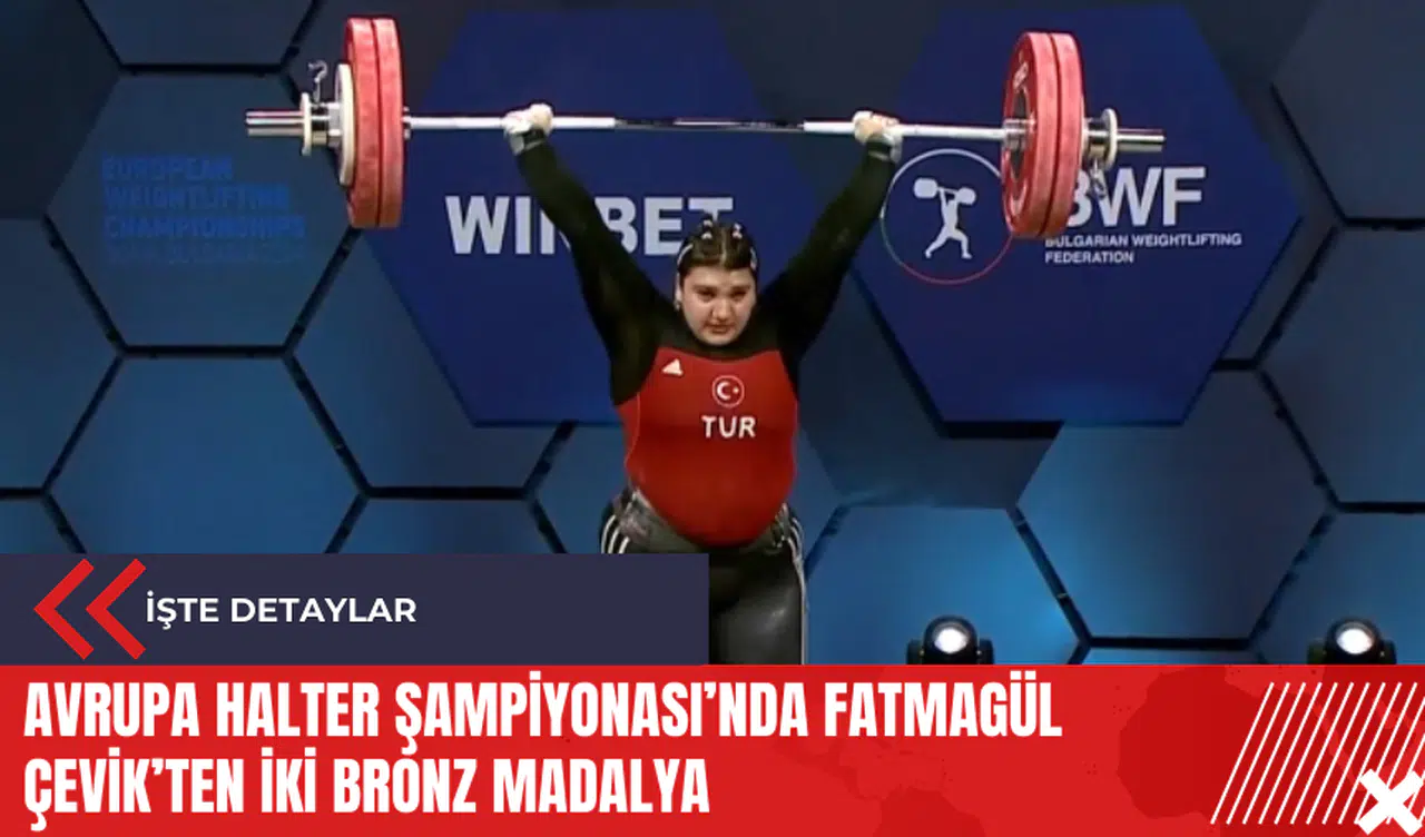 Avrupa Halter Şampiyonası’nda kadınlar +87 kiloda mücadele eden Fatmagül Çevik, gösterdiği başarılı performansla Türkiye’ye iki bronz madalya kazandırdı. Çevik, silkme dalında 131 kilo kaldırarak bronz madalyanın sahibi oldu. Ayrıca toplamda 238 kilo ile yine bronz madalya elde etti.