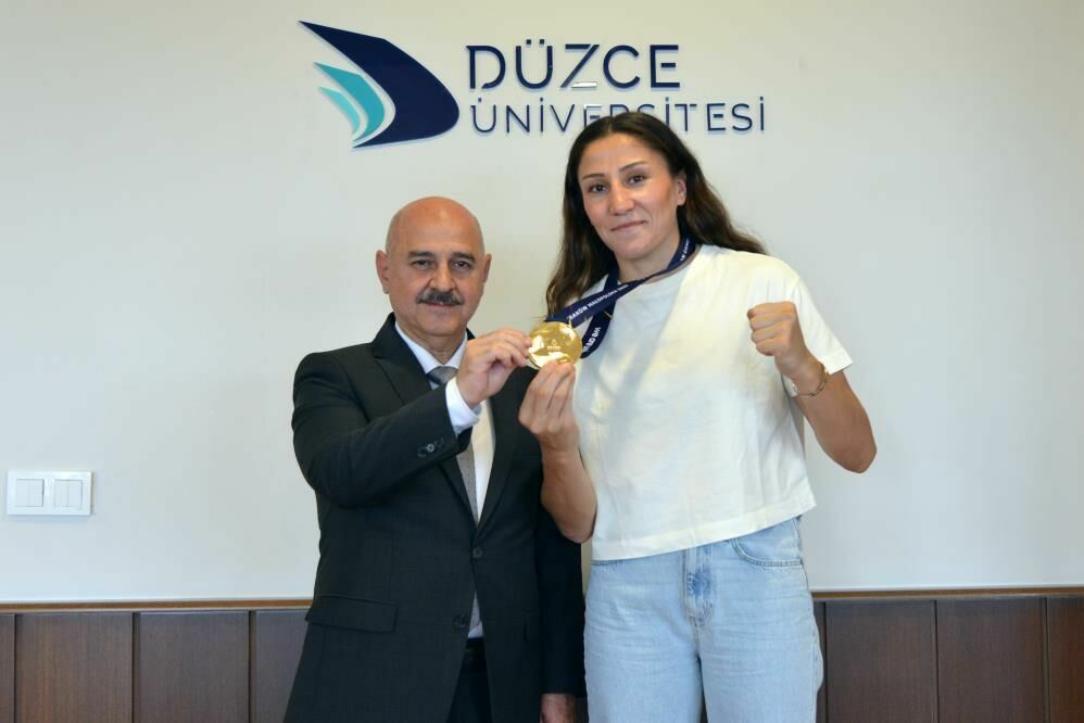 Düzce Üniversitesi Spor Bilimleri Fakültesi'nden mezun olan milli sporcu Bediha Tacyıldız, Portekiz'in Albufeira kentinde düzenlenen Kick Boks Dünya Şampiyonası'nda 7. kez altın madalya kazandı.