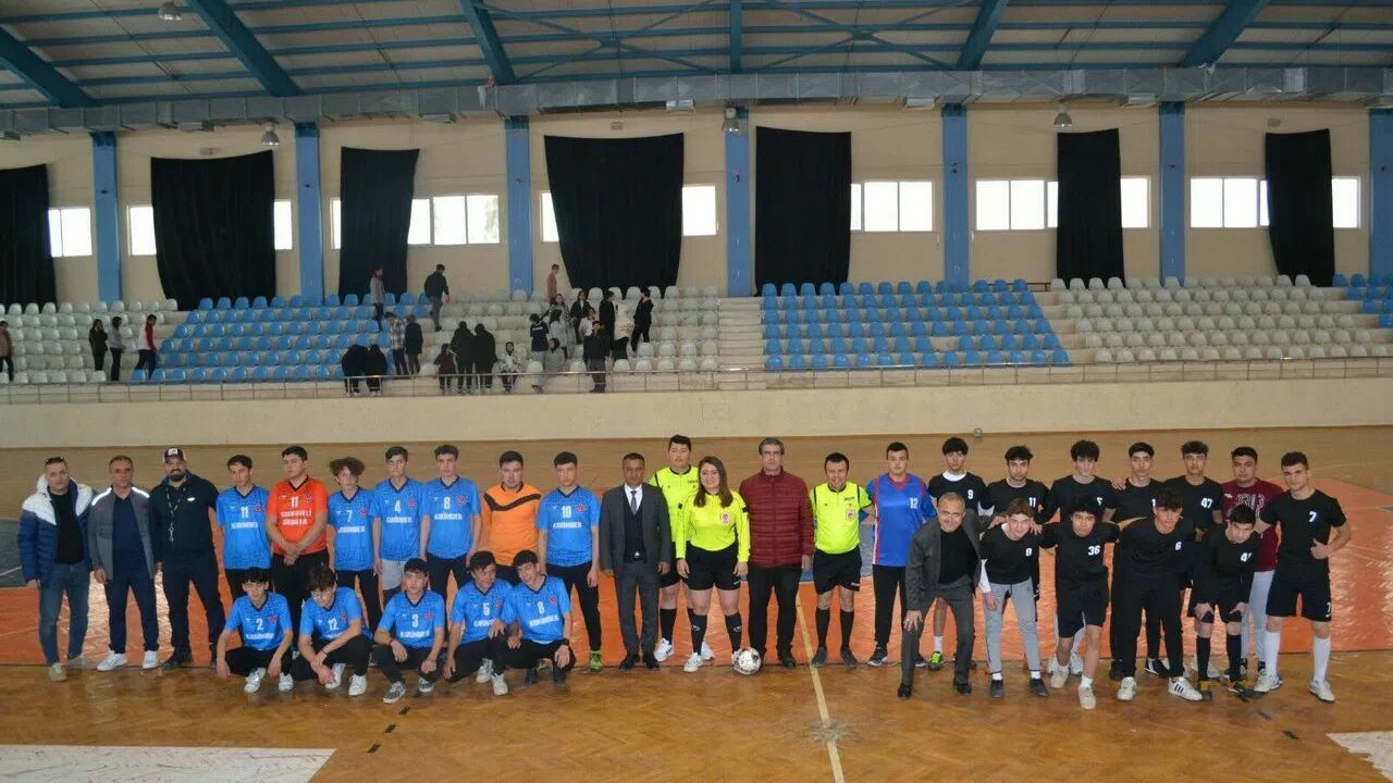 Futsal Turnuvalarında dereceye giren okulların kupa ve madalyaları İlçe Milli Eğitim Müdürü Akif Tak, Gençlik Spor İlçe Müdürü Ahmet Tunç ve Şube Müdürü Abdullah Güven tarafından verildi. (İHA)