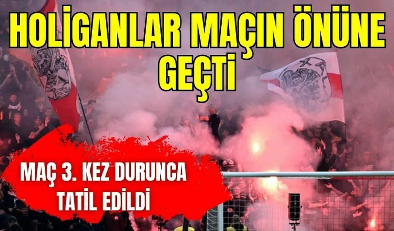 Feyenoord'un 9 ve 18. dakikalarda Santiago Gimenez, 37. dakikada ise Igor Paixao ile bulduğu gollerin ardından ev sahibi Ajax'ın taraftarları, sahaya birçok yabancı madde atmaya başlayınca mücadele tatil edildi.