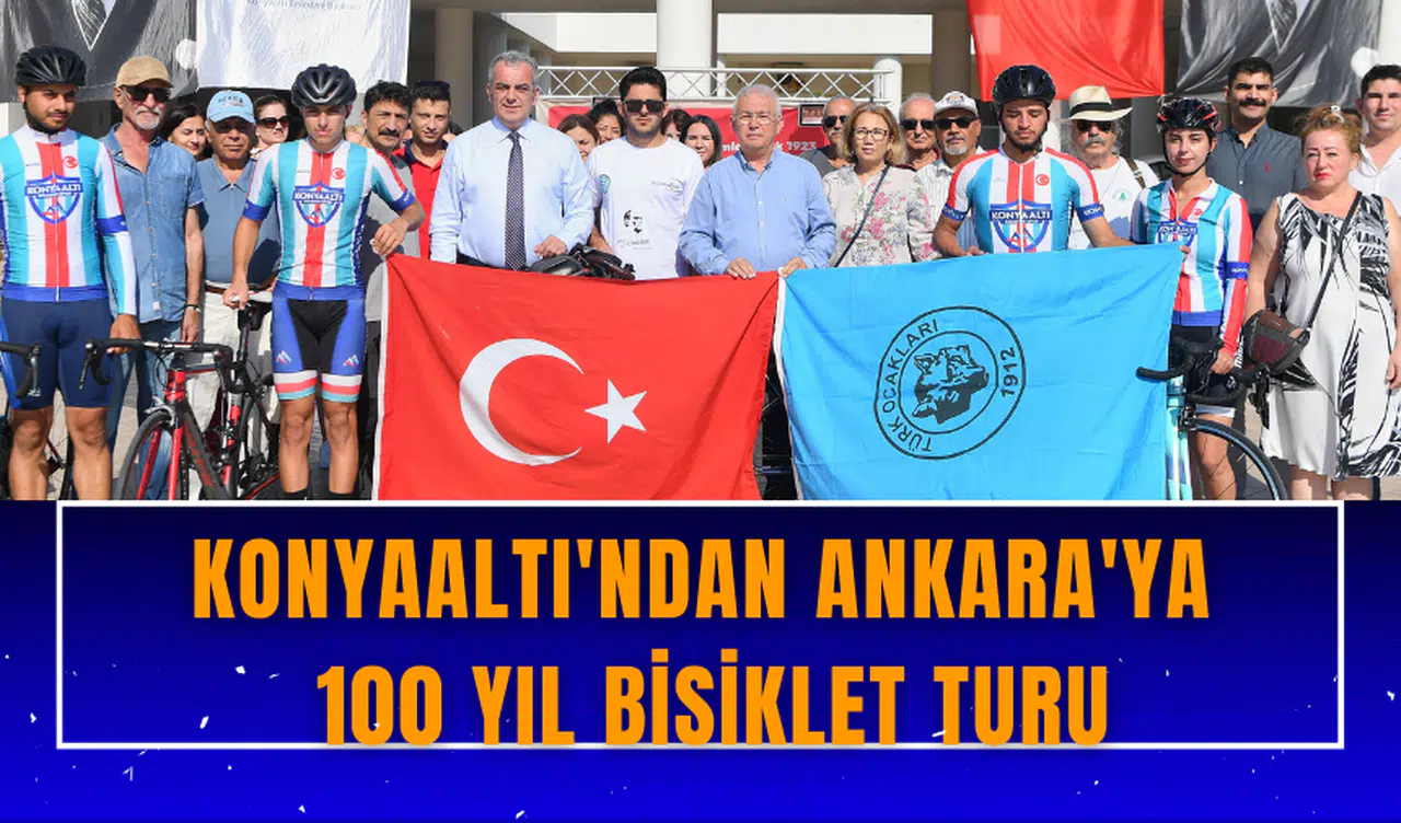 Konyaaltı Belediyesi ve Türk Ocakları Antalya Şubesi iş birliği ile düzenlenen Cumhuriyet'in 100. yılına özel Antalya'dan Ankara'ya Bisiklet Turu, Konyaaltı Belediyesi hizmet binası önünde başladı.