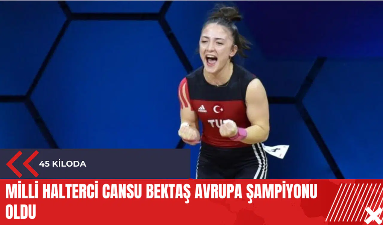 Avrupa Halter Şampiyonası'nda kadınlar 45 kiloda mücadele eden Cansu Bektaş, koparmada 75 kilo kaldırarak Türkiye'nin bu şampiyonadaki ilk altın madalyasını kazandı. Bektaş'ın bu başarısıyla Avrupa şampiyonluğuna ulaştı.