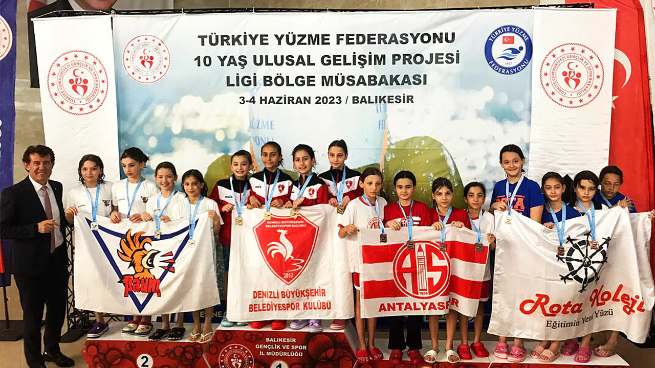 Antalyaspor’dan yapılan açıklamaya göre kırmızı beyazlı yüzücülerin tamamının katılım barajlarını geçerek madalya kazandığı müsabakalarda Yağmur Sürücü, Beren Ece, Zehra Nur Öztürk ve Elif Rüya Canoğlu kadrosundan oluşan serbest bayrak takımı kızlar 4x50 metrede bölge üçüncüsü oldu. Beren Ece, Ünal Ceyhun Köseoğlu, Elif Rüya Canoğlu ve Deniz Çatak'tan isimlerinden oluşan serbest karma bayrak takımı ise 4x50 metrede bölge dördüncüsü olarak kürsüye çıktı.