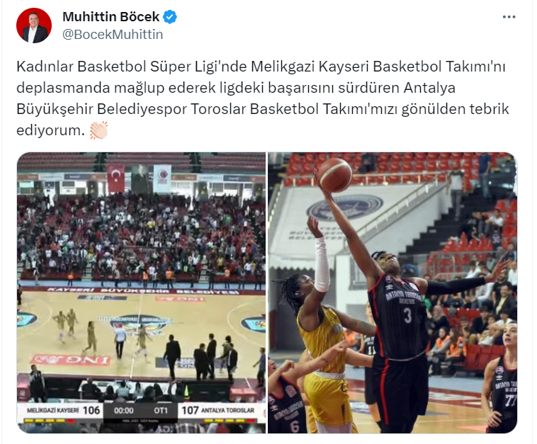 Antalya Büyükşehir Belediye Başkanı Muhittin Böcek, sosyal medyasından tebrik mesajı paylaştı.