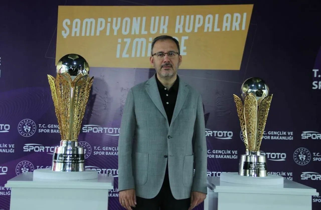 Alsancak Gençlik Merkezi'nde bugün gerçekleştirilen toplantıyla Spor Toto Süper Lig ve Spor Toto 1. Lig 2022-2023 sezonu şampiyonluk kupaları Gençlik ve Spor Bakanı ve AK Parti İzmir Milletvekili Mehmet Muharrem Kasapoğlu’nun katılımıyla tanıtıldı. Spordaki yükseli birlikte büyütmeye devam edeceklerini dile getiren Bakan Kasapoğlu, "Alsancak Gençlik Merkezimizde yine bir ilk vesilesiyle bir aradayız. Biliyorsunuz futbol liglerimizde artık sona yaklaşıyoruz. İpi göğüsleyenler yavaş yavaş ortaya çıkıyor ve tabii biliyorsunuz Bakanlık olarak Süper Lig'in ve futbol liglerinin sponsoru bir kurumuz. Spor Toto teşkilatı olarak. Bugün iki kupamızla birlikteyiz. Süper Lig kupamız ve Spor Toto 1. Lig kupamız. Önümüzdeki günlerde tabii biliyorsunuz Süper Lig'in şampiyonu belli olacak. Onun öncesinde de kupayı Bakanlık olarak her yıl sergilediğimiz gibi bu yıl da sergilemeye bugün itibariyle başlıyoruz" dedi.