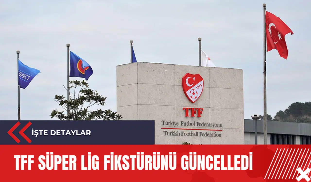 Türkiye Futbol Federasyonu (TFF), 7 Nisan'da oynanacak Süper Kupa finali nedeniyle 32. hafta fikstürünün ileri bir tarihe erteleneceğini duyurdu. TFF'den yapılan açıklamada, Trendyol Süper Lig'in 5, 6, 7 ve 8 Nisan tarihlerinde planlanan 32. hafta maçlarının birer hafta kaydırılarak 26 Mayıs 2024 tarihinde tamamlanacağı belirtildi. Ayrıca, Turkcell Süper Kupa müsabakasında takvim değişikliği sebebiyle Futbol Müsabaka Talimatı'nın 18. maddesinin bu maçta uygulanmayacağı ve kulüplerin transfer ettiği futbolcuları finalde oynatabileceği ifade edildi.