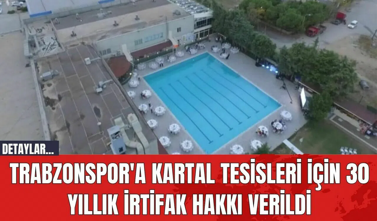 Trabzonspor, İstanbul Kartal'da yer alan tesislerinin 30 yıl süreyle kullanım hakkını elde etti. Kamuoyunda "Kartal Tesisleri" olarak bilinen bu tesislerin irtifak hakkı, T.C. Çevre, Şehircilik ve İklim Değişikliği Bakanlığı'nın onayıyla Daimi ve Müstakil Üst Hakkı Tesisi olarak tescillendi. Ayrıca, Trabzonspor'un ana merkezi olan Mehmet Ali Yılmaz Tesisleri'nin de 29 yıllık irtifak hakkı, bakanlığın oluru ile yeniden tahsis edildi.
