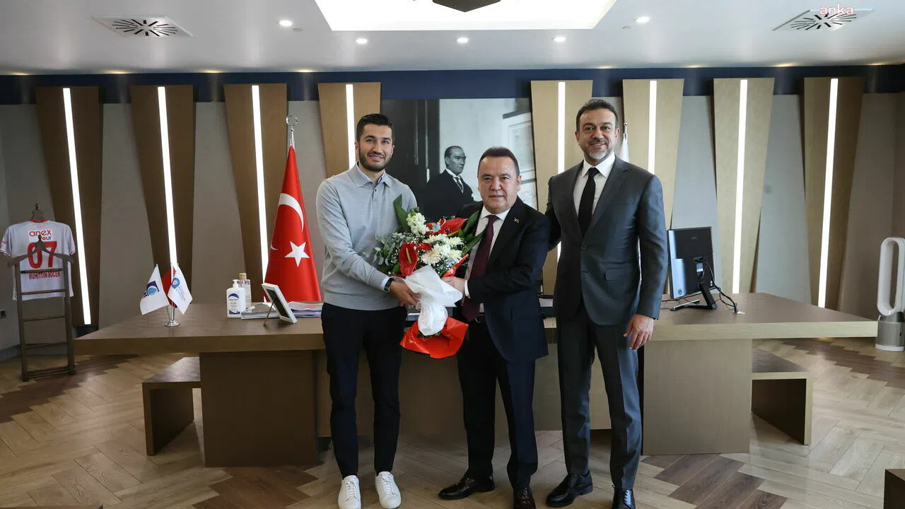 Başkan Muhittin Böcek, Antalyaspor Başkanı Gülel ve Nuri Şahin ile bir süre sohbet etti. Ziyaret anısına Teknik Direktör Nuri Şahin, Başkan Muhittin Böcek’e çiçek takdim etti.