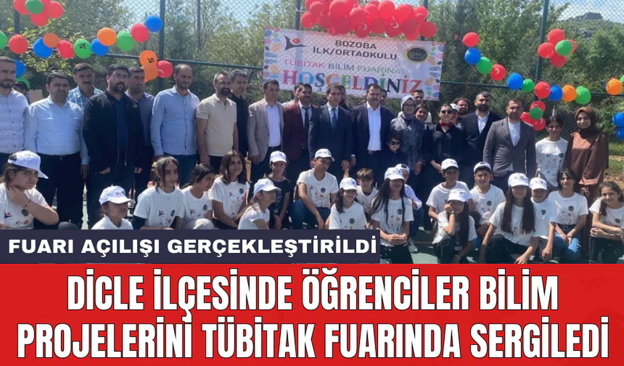 Diyarbakır'ın Dicle ilçesinde bulunan Bozoba Ortaokulu öğrencileri, hazırladıkları projeleri TÜBİTAK Bilim Fuarı'nda sergiledi. Fuarın açılışına Dicle Kaymakamı Kadir Yurdagül, Dicle İlçe Milli Eğitim Müdürü Mustafa Sabır, İlçe Milli Eğitim Şube Müdürü İbrahim Halil Polat, Bozoba Ortaokulu Müdürü Zeki Kozan, öğretmenler, öğrenciler ve veliler katıldı.