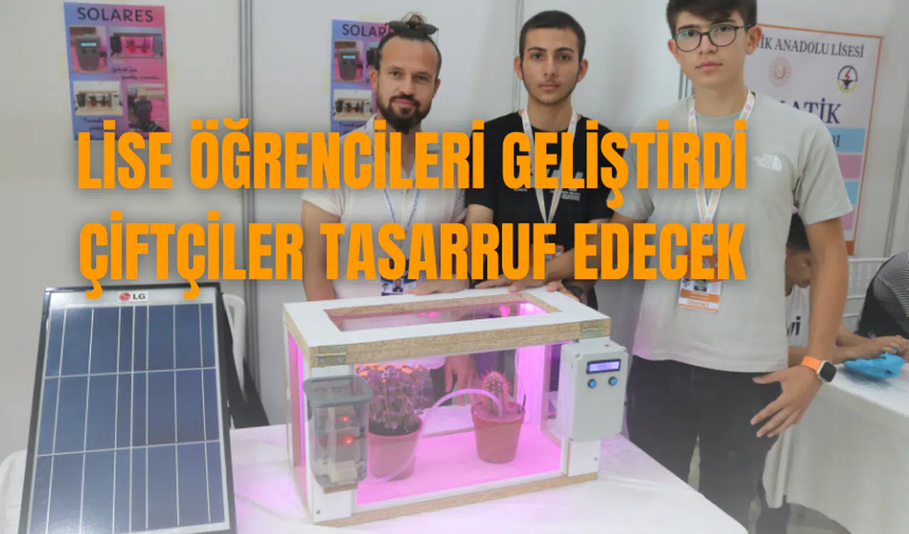 Projeyi anlatan lise öğrencisi Eren Kayabaşı, “Projenin ismi ‘Solares’. İsmi solar paneli ve sera birleşiminden geliyor. Yenilenebilir enerji kaynaklarını kullanıyoruz ve israfı daha aza indirmek için bu projeyi geliştirdik. Çiftçilerimiz evinden tarlalarına gitmeleri için bir enerji sarf etmeleri gerekiyor. Bu enerjiyi en aza indirmek için uzaktan kontrol yaptık. Burada oluşturduğumuz mini serada değerleri uzaktan izleyebiliyoruz. Seramızda botanik bitkilerinden olan kaktüs ve bir adet çiçek kullandık. Kaktüs normal bir çiçeğe göre daha az su ister. Kaktüs ve çiçeğe ayrı bir sulama sistemi yaptık. Kaktüsü ayrı ölçebiliyoruz ve iki ayrı su pompamız var, bu su pompalarından da sulama işlemi sağlayabiliyor. Su haznemizin içerisinde bir adet su sensörümüz var. Bu sensör sayesinde su seviyesi belirli bir miktarın altına düştüğü an bize alarm vermesini sağladık. Alarmın yanı sıra telefonumuza da bildirim geliyor. Bu şekilde de su tankımıza su eklemesi yapabiliyoruz. Güneş ışınlarının az olduğu ortamlarda bitkilerin fotosentezi sağlayabilmesi için biz seramızda ultraviyole ışık kullandık. Ultraviyole ışıklar güneş kadar olmasa da fotosenteze destek sağlayabiliyor. Telefonumuzdaki uygulamada çiçeklerin değerlerini ve nemlerini ayrı ayrı bize gösterebiliyor” şeklinde konuştu.