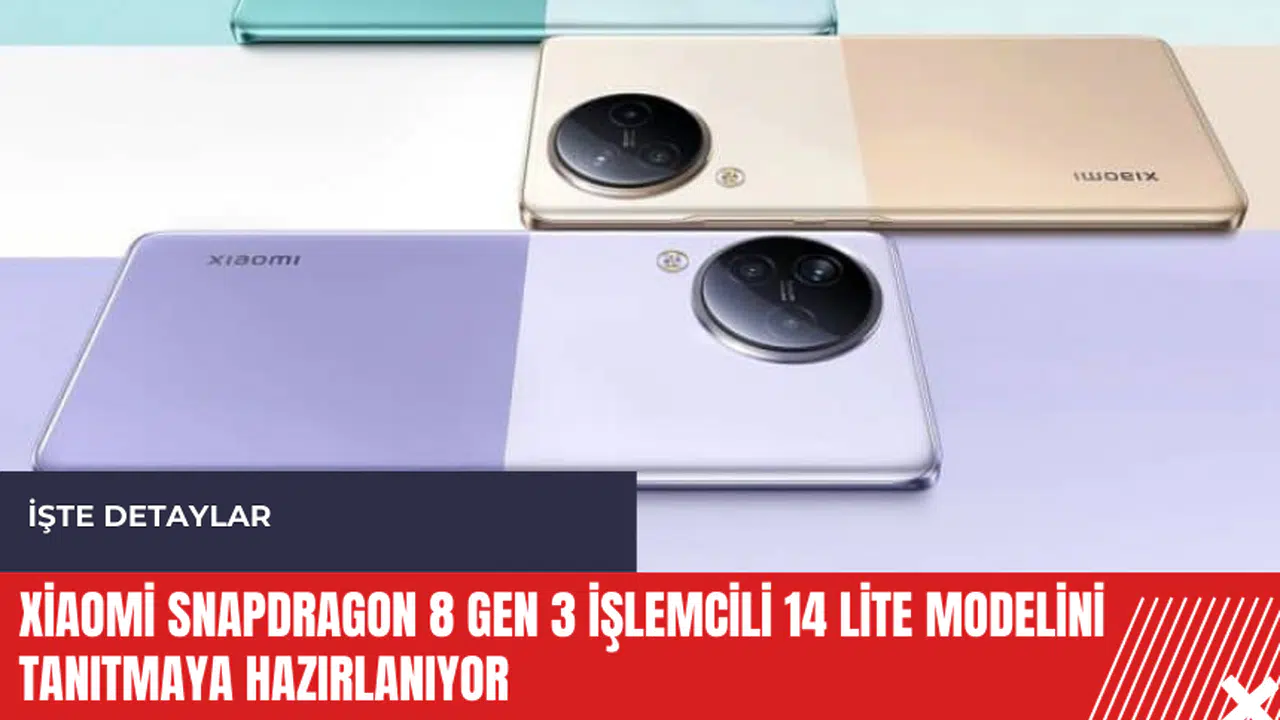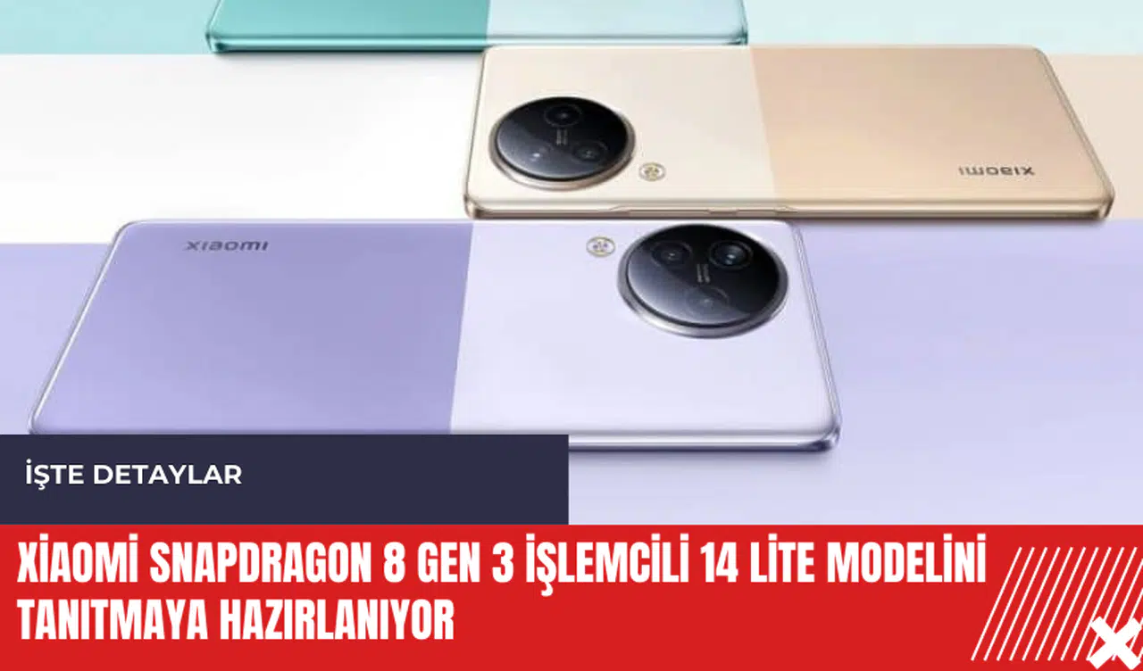 Xiaomi, uygun fiyatlı bir seçenek olan 14 Lite modelini Snapdragon 8 Gen 3 işlemciyle güçlendirmeyi planlıyor. Hindistan'da sertifika alan cihazın yakında piyasaya sürüleceği iddia ediliyor. Ayrıca, bu modelin Çin pazarında Xiaomi Civi 4 olarak sunulabileceği düşünülüyor. Özellikleri Civi 4'e benzer olması beklenen Xiaomi 14 Lite, kavisli OLED ekran, çift ön kamera ve 50 Megapiksel ana arka kamera gibi özelliklere sahip olacak. Cihazın tanıtım tarihi ise Mayıs ayı olarak tahmin ediliyor.
