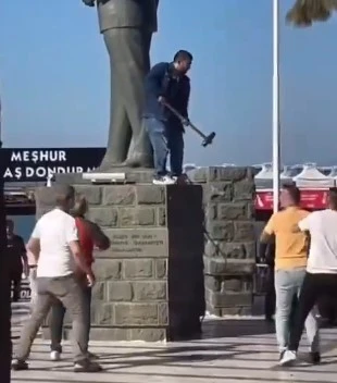 Ayvalık’ta Atatürk heykeline balyozlu saldırı! Vatandaş müdahale etti