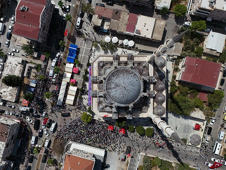 Katılımın yoğun olmasından dolayı cenaze töreni, caminin önündeki Cumhuriyet Caddesi'nde gerçekleşti.