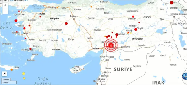 Boğaziçi Üniversitesi Kandilli Rasathanesi ve Deprem Araştırma Enstitüsü, Kahramanmaraş'ın Pazarcık ilçesinde 5.0 büyüklüğünde bir depremin meydana geldiğini duyurdu.