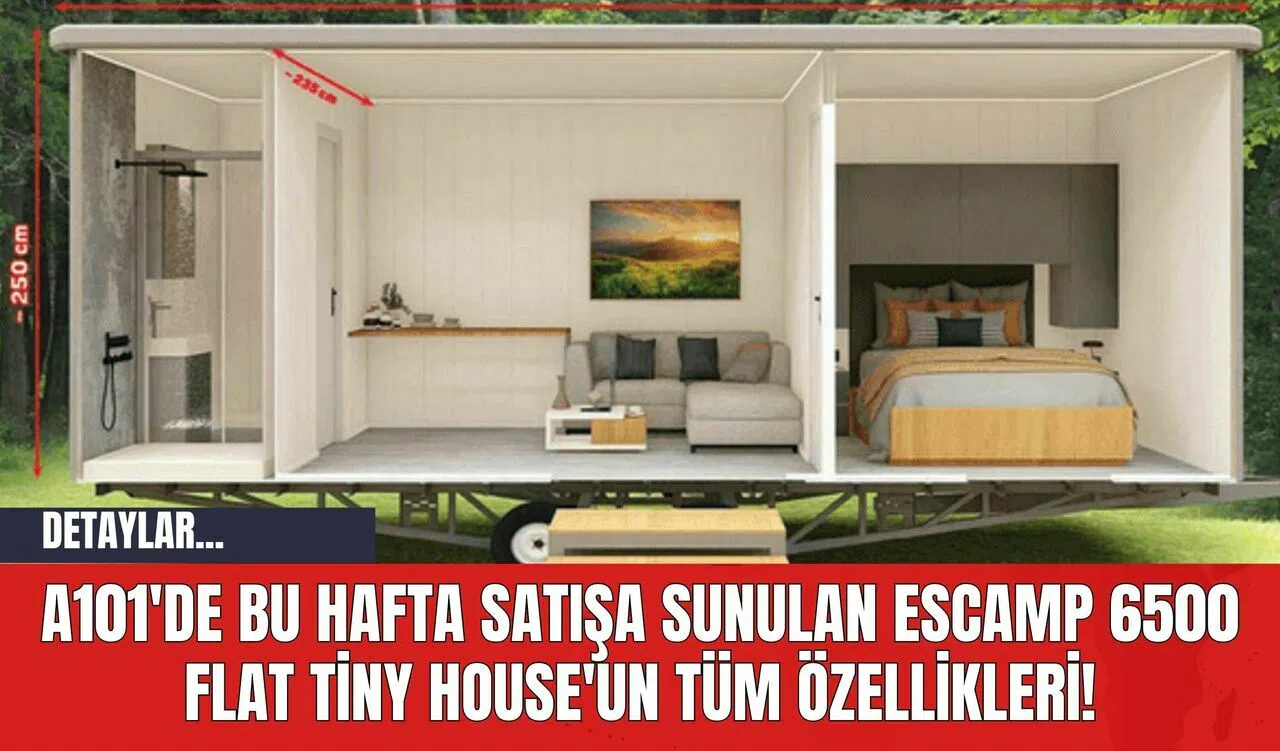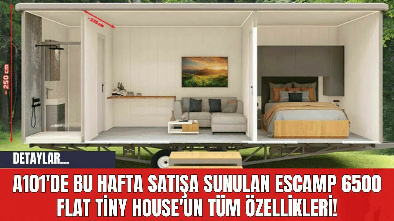 Satışa sunulacak olan ESCAMP 6500 Flat Tiny House, 16 metrekarelik bir yaşam alanı sunuyor. 1+1 olarak tasarlanan bu taşınabilir ev, 650 cm uzunluğa, 250 cm yüksekliğe ve 255 cm derinliğe sahip. İki yetişkin ve bir çocuğun rahatça konaklayabileceği bu ev, SCHLEGL marka 1400 kilogram kapasiteli iki adet torsiyon frenli dingil ile donatılmış durumda. A101 tarafından özel olarak üretilen ve sadece mağazalarda satılacak olan ESCAMP 6500 Flat Tiny House'un fiyatı ise 399 bin 900 TL olarak belirlendi.