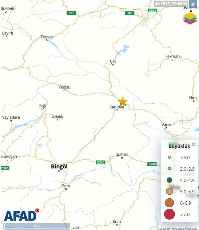 AFAD, Bingöl'de 3.7 büyüklüğünde bir deprem meydana geldiğini duyurdu.