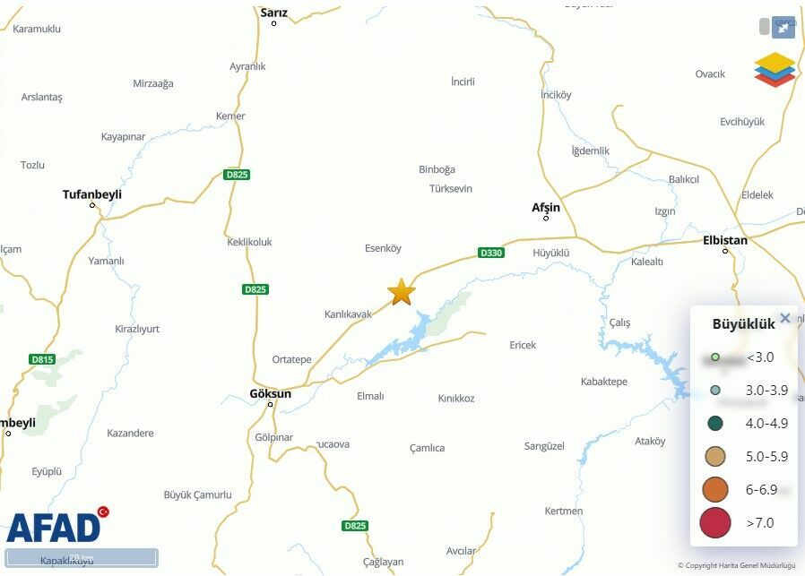 Afet ve Acil Durum Yönetimi Başkanlığı (AFAD) tarafından yapılan açıklamaya göre, Kahramanmaraş'ın Göksun ilçesinde 3.9 büyüklüğünde bir deprem meydana geldi.