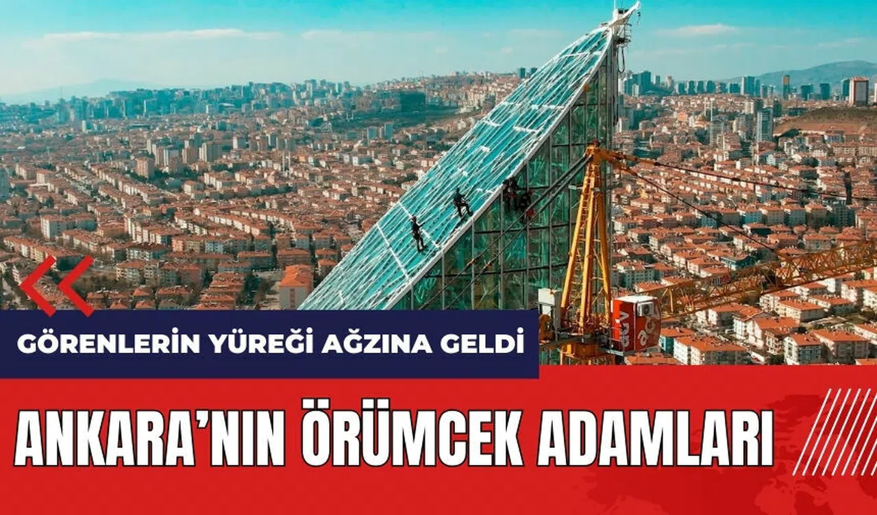 Dağcılar, Ankara'nın Yüksek Binası Üzerindeki Görevlerini Yerine Getiriyor
