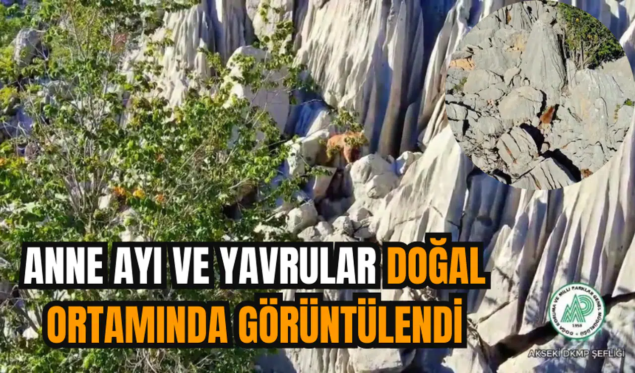 Doğa Koruma ve Milli Parklar Antalya Müdürlüğü Akseki Şefliği tarafından Gidengelmez Yaban Hayatı Geliştirme Sahası içerisinde yapılan çalışmalar sırasında kayalıklarda dolaşan anne ayı ve ikiz yavrularına denk gelindi. Ekipler tarafından dronla çekilen görüntülerde anne ayı ve yavrularının kayalıklar üzerinde dolaşarak zirvenin tadını çıkardıkları görüntülendi. Görüntüler Doğa Koruma ve Milli Parklar tarafından sosyal medya hesaplarında “Anne ayı ve ikizleri dağların zirvesinde özgürce geziyor” mottosu ile yayınlandı. (İHA)