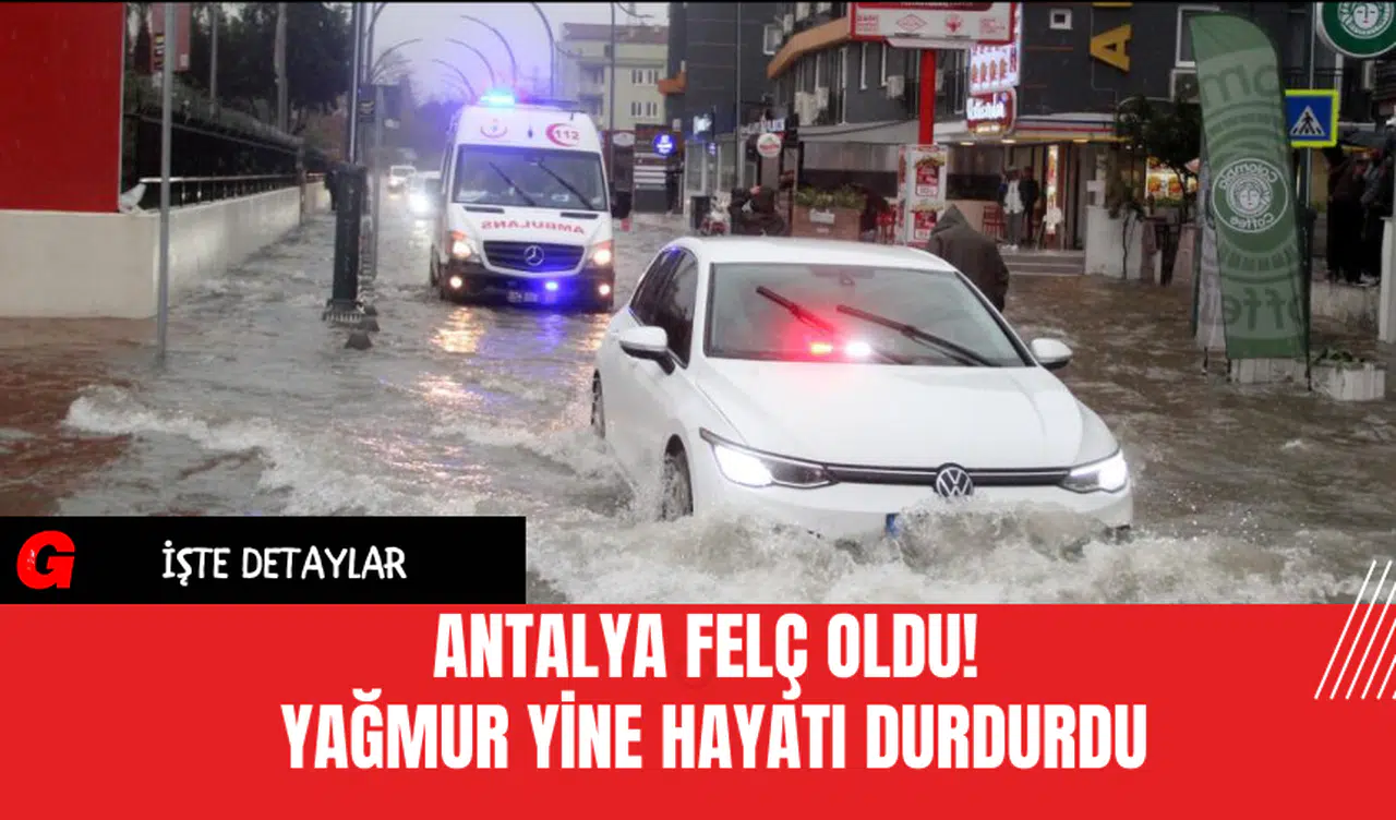 Antalya’da etkili olan yoğun yağış, günlük yaşamı olumsuz etkiledi. Cadde ve sokaklar suyla kaplandı ve bir esnaf, iş yerine su girmemesi için araç sürücülerini tehlikeye rağmen uyarmaya çalıştı.