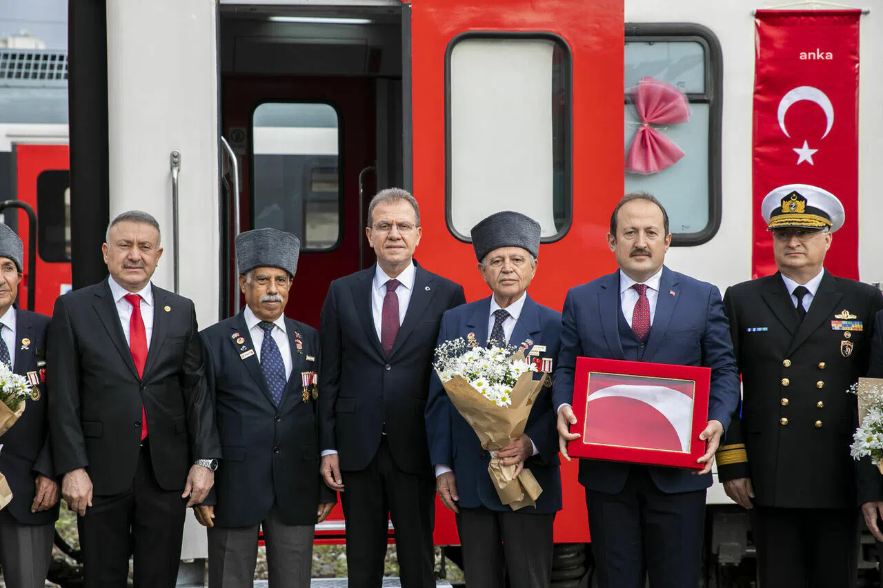 Mersin Tren Garı’nda başlayan programda protokol üyeleri tarafından muharip gazilerden oluşan temsili heyet karşılandı. İçinde gazilerin bulunduğu tren, Mersin Garı’na geldikten sonra bir gazi tarafından Türk bayrağı Mersin Valisi Ali Hamza Pehlivan’a teslim edildi. Tren Garı’nın ardından Cumhuriyet Meydanı’nda devam eden tören, Vali Pehlivan, Tuğamiral Gedik ve Başkan Seçer tarafından Atatürk Anıtı’na çelenk sunulması ile başladı.