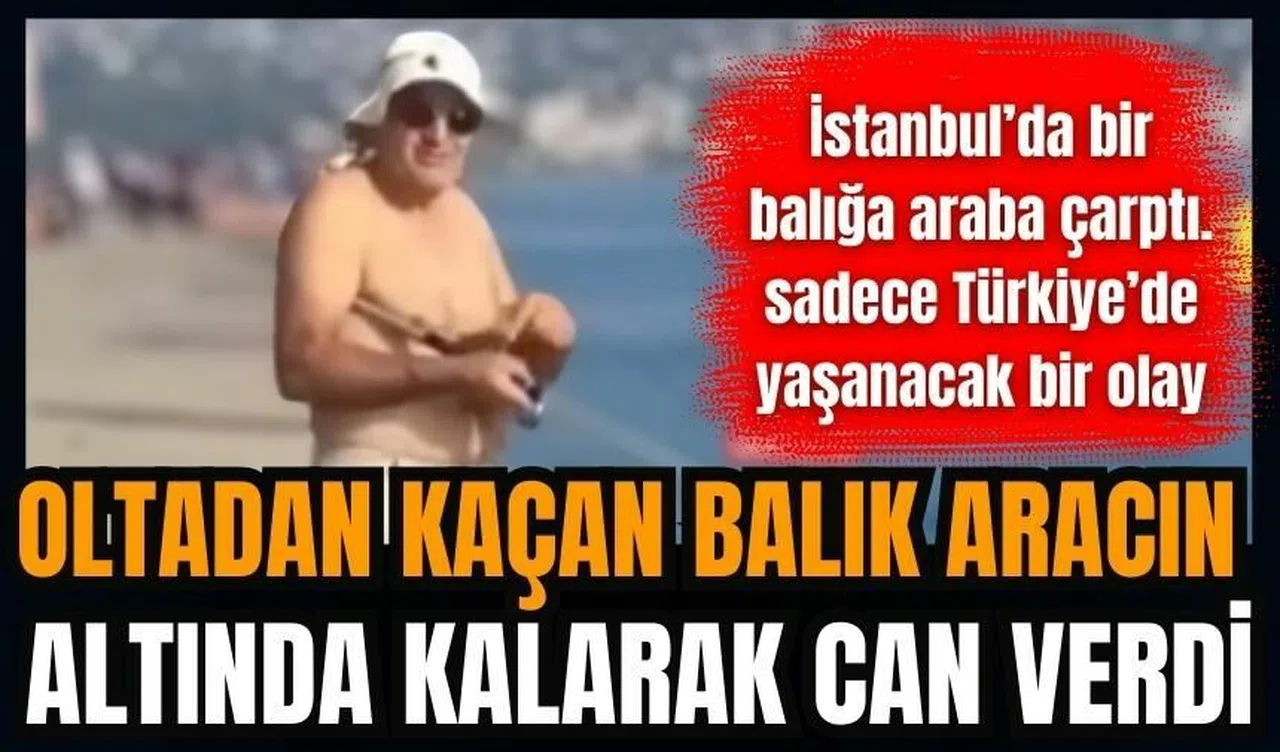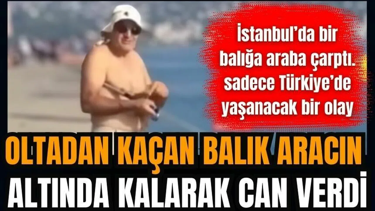 İstanbul'da ilginç bir olay yaşandı. Bir balıkçının oltasından kaçan balık, bir arabanın altında hayatını kaybetti.