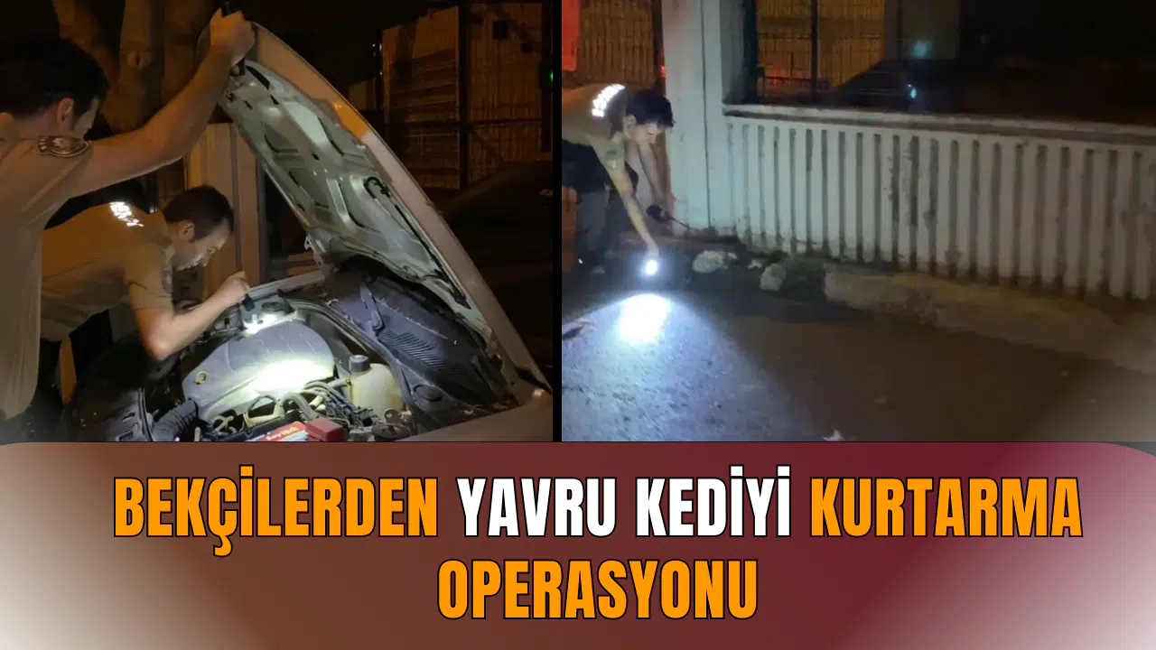 Olay, Serik ilçesine bağlı Merkez Mahallesinde gece saatlerinde meydana geldi. Oturduğu evden yavru kedi sesi duyan Salih Yılmaz, yavru kedinin kurtarılması için bekçilerden yardım istedi. Bunun üzerine otomobil sahibi Mehmet D. telefonla aranarak durum hakkında bilgi verildi. Araç sahibinin gelerek otomobili açmasıyla başlayan operasyon yavru kedi çıkarılmasıyla sona erdi. Özgürlüğüne kavuşan yavru kedi daha sonra gözlerden kaybolurken, vatandaşlar, yavru kediyi kurtaran bekçilere teşekkür etti.