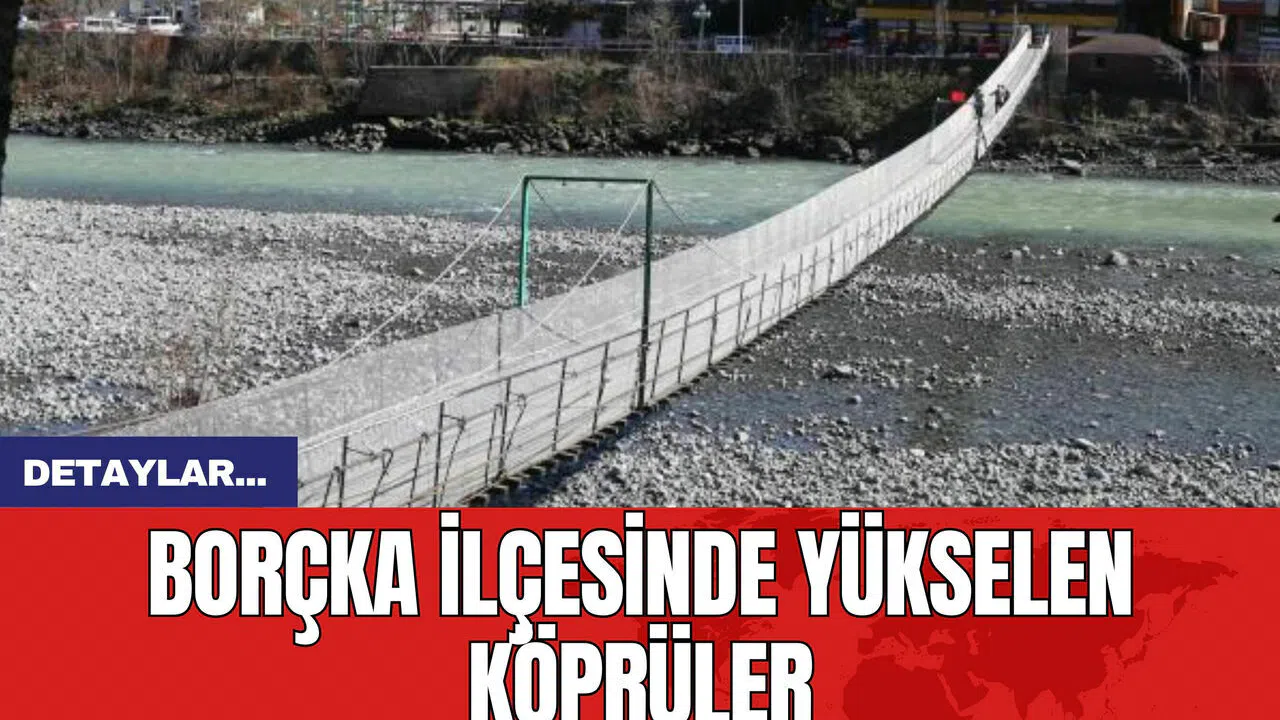 Borçka ilçesinde bulunan Çoruh Nehri üzerindeki 105 ve 90 metre uzunluğundaki iki asma köprü, Karadeniz'in en uzun asma köprüleri unvanını taşıyor. Borçka ilçesi, tarihi ve kültürel değerleriyle ön plana çıkıyor. Buradaki asma köprüler, Çoruh Nehri kıyısında yer alan evleri ve mahalleleri birbirine bağlayarak önemli bir rol üstleniyor.