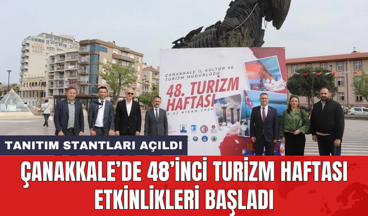 Çanakkale'de 48. Turizm Haftası kapsamında Kordon Truva atı önünde turizm sektöründen temsilciler tarafından tanıtım stantları açıldı. Vali İlhami Aktaş, İl Kültür ve Turizm Müdürü Çağman Esirgemez, ÇOMÜ Rektör Yardımcısı Prof. Dr. Evren Karayel Gökkaya, İl Kültür ve Turizm Müdür Yardımcısı Hüseyin Şevik, ilgili kurumların personeli ve vatandaşların katıldığı etkinlikte, turizm sektöründeki yenilikler ve tanıtım faaliyetleri gözler önüne serildi.