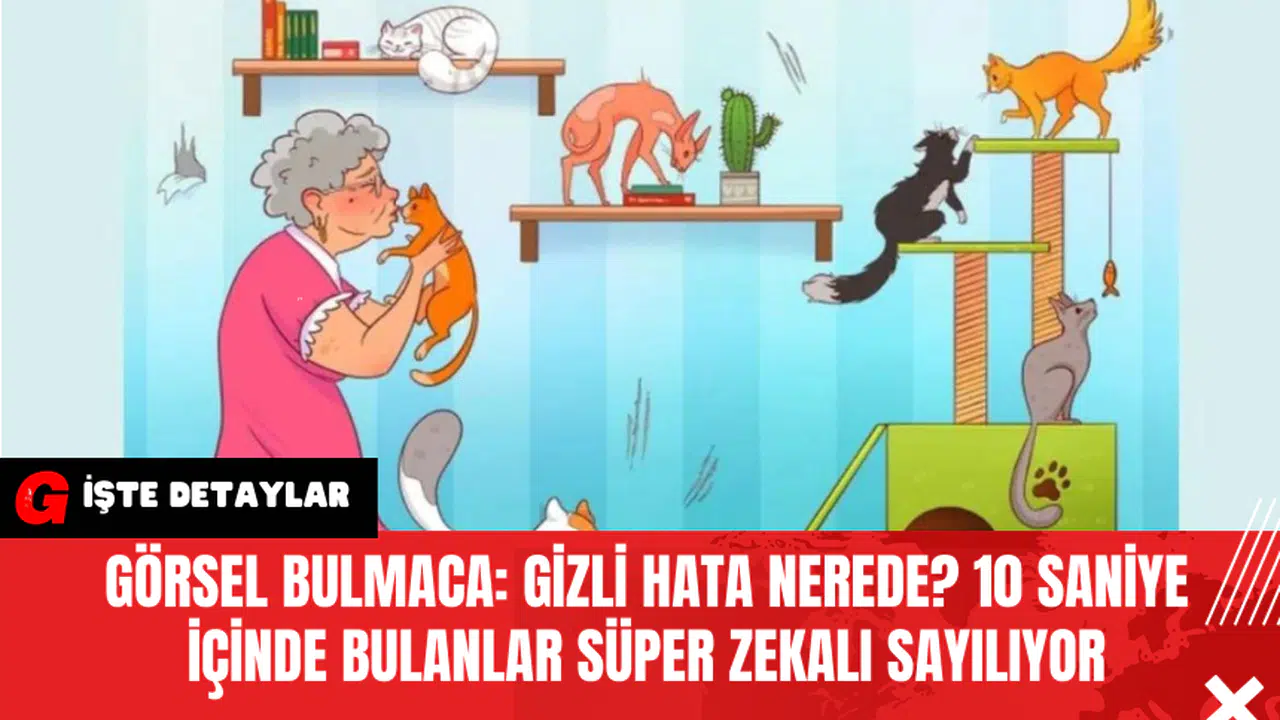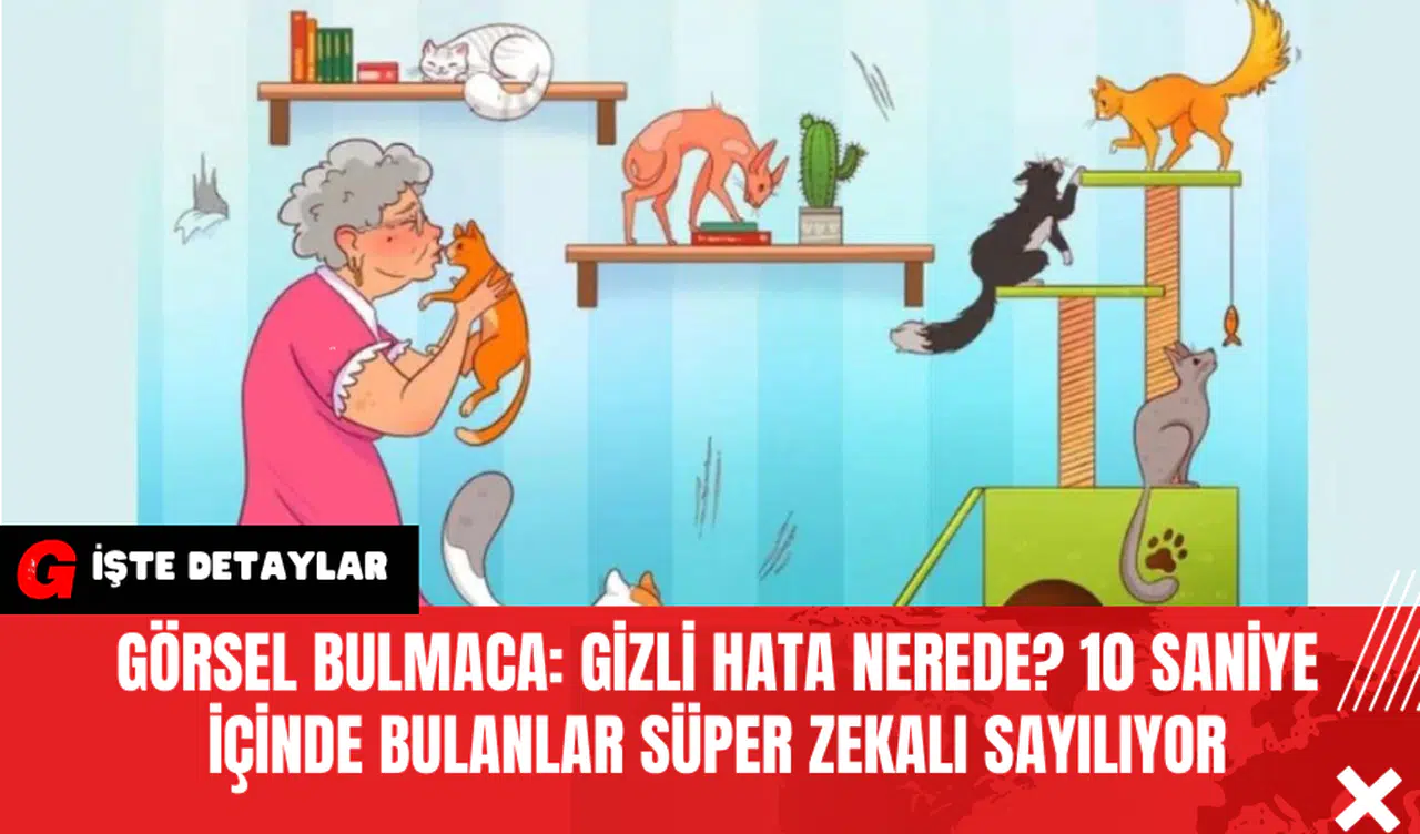 Bu eğlenceli görsel bulmacada, yaşlı bir kadının odasında kedileriyle oynadığı bir sahne var. Ancak resimde gizli bir hata bulunuyor. Acaba bu hatayı 10 saniye içinde bulabilecek misiniz?