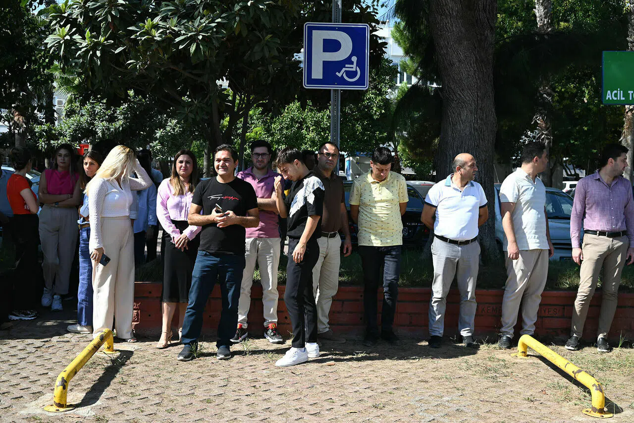 Tahliye edilen personel, belediye önündeki acil toplanma alanında toplandı ve içeride kalan personelin olup olmadığı kontrol edildi.