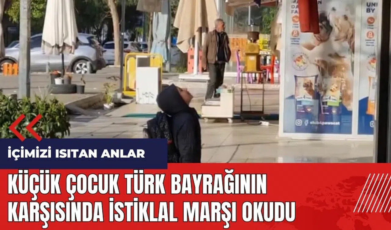 Bu özel anlar, bir vatandaşın cep telefonu kamerasıyla ölümsüzleştirildi. Küçük çocuğun bayrağa duyduğu sevgi ve İstiklal Marşı'ndaki coşkusu insanların içini ısıttı.