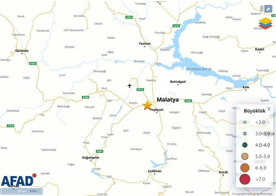 Afet ve Acil Durum Yönetimi Başkanlığı (AFAD) tarafından yapılan açıklamaya göre, Malatya'nın Yeşilyurt ilçesinde 3.8 büyüklüğünde bir deprem meydana geldi.