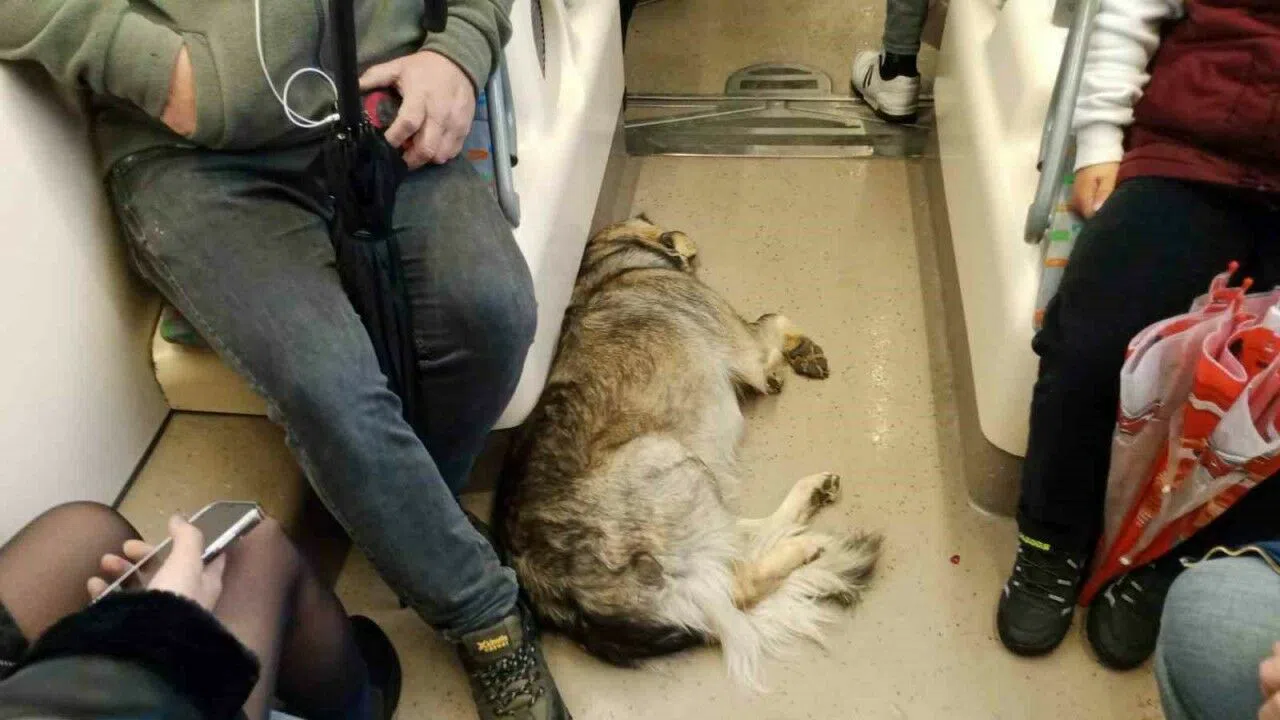 Sabah soğuğunda üşüyen bir köpeğin tramvaya binerek ısınmaya çalışması yolcuların ilgisini çekti. Yolcuların uyuyan köpeği rahatsız etmemeye çalışması ise görenlerin takdirini topladı.